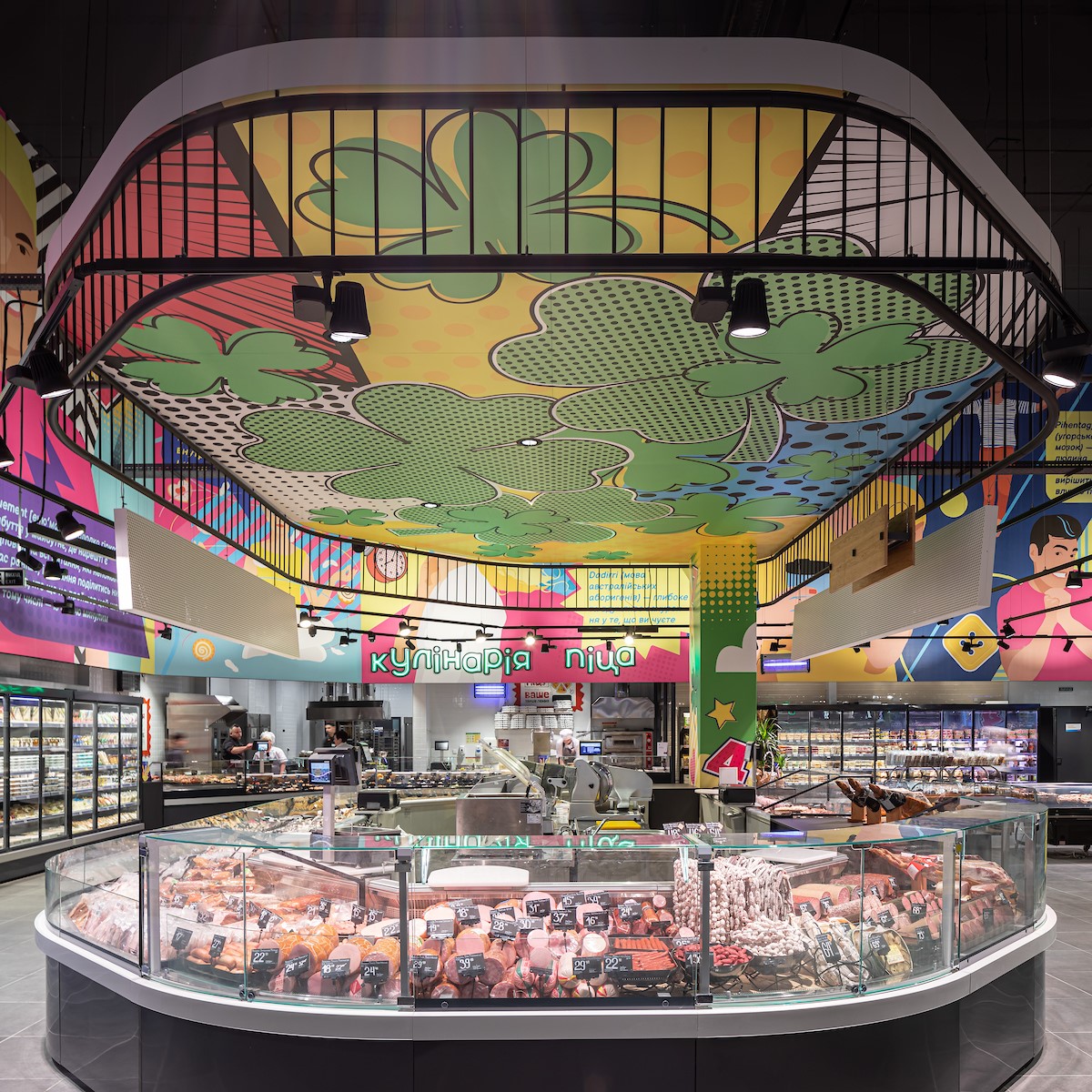 Над островом «Лавки традиций» выполнен подвесной потолок с композицией из четырехлистного клевера — главного талисмана удачи. А в отделе выпечки интегрированы фигурки мелких крафтярей — ярким напоминанием мастеров, ежедневно преданно выпекающих вкусные багеты и хлебцы. Кассовые номерки выполнены в виде котиков «Манеки неко», что с японского дословно переводится как «привлекательный кот». Обычно это знак удачи в восточных культурах. Только в нашем случае эти котики скрещивают пальчики на успех и показывают жест «OK» и "Любовь«.