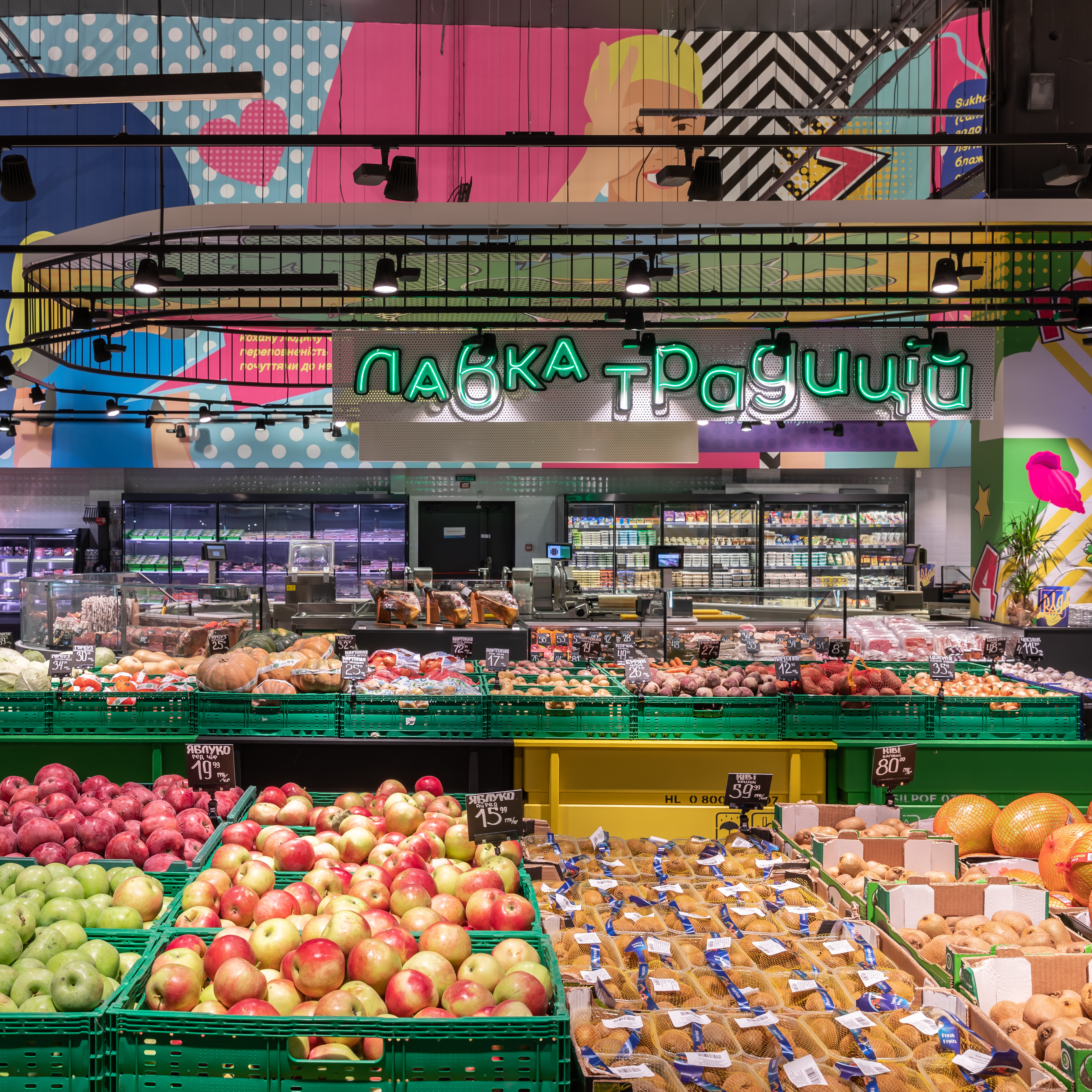 В новом «Сільпо» площадью 1523 кв. м на отведенные специальные атмосферные зоны: выпечка от «Крафтяров» с легендарным гречишным багетом, рыба собственного производства, горячая свежеиспеченная пицца, которую готовят прямо в торговом зале, и своя кондитерская.