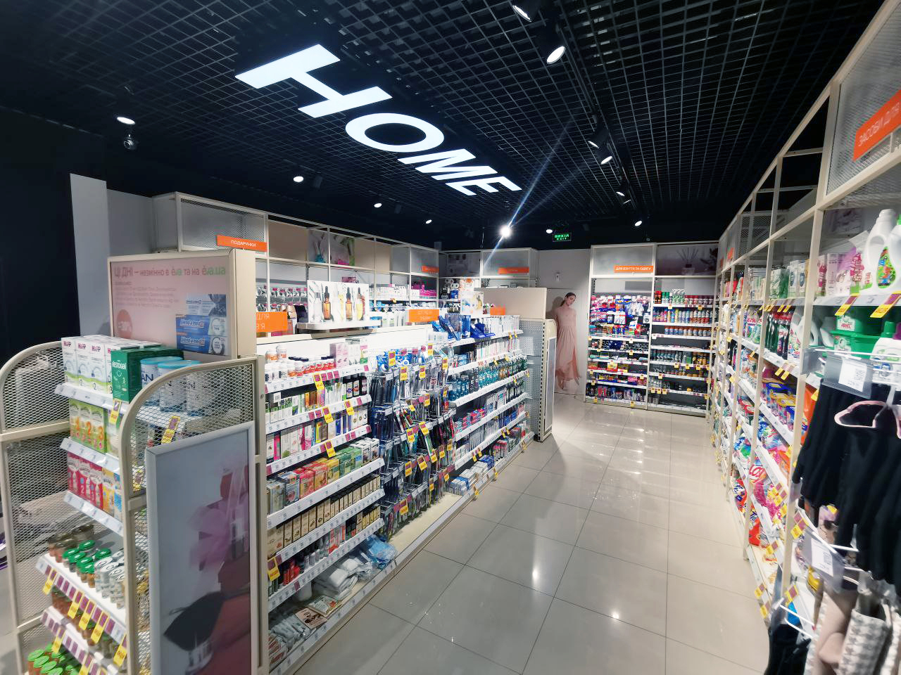 Адрес нового магазина: ул. Николая Оводова, 51, корп. 1 (ТРК Sky Park). Площадь торгового зала составляет 213,8 м2. В отличие от привычной EVA, пространство этого магазина четко разделено на зону household (товары по уходу за домом), оформленную в спокойных бежевых тонах, и зону красоты, выполненную в стильном черном цвете.