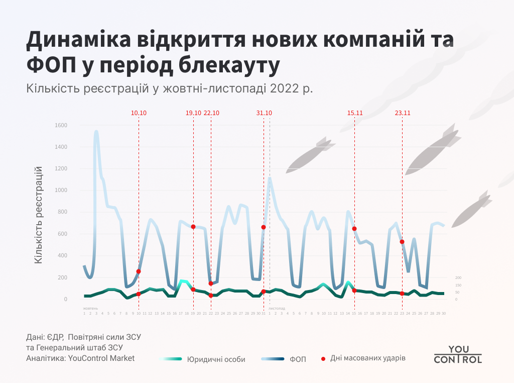 Как регистрировался бизнес в период массированных ударов по инфраструктуре: на первом месте — ритейл