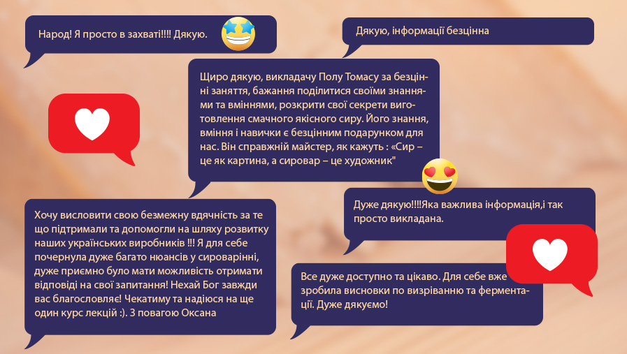 Серия вебинаров была проведена для сыроваров Украины, которые: