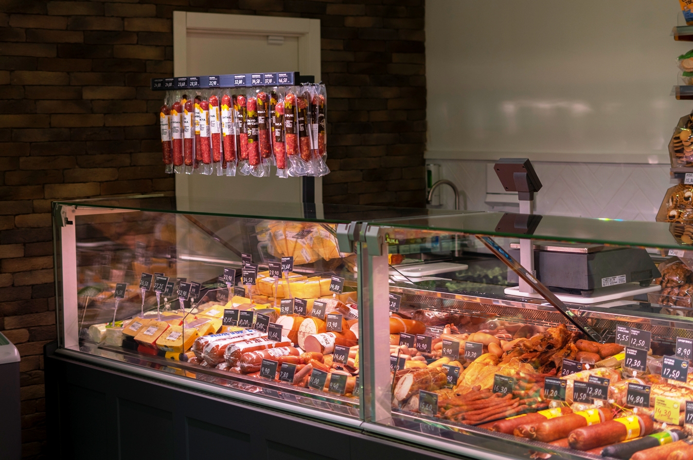 У «Власной Фермы» — разнообразие свежайших колбасных изделий и мяса и почти все — собственного производства.