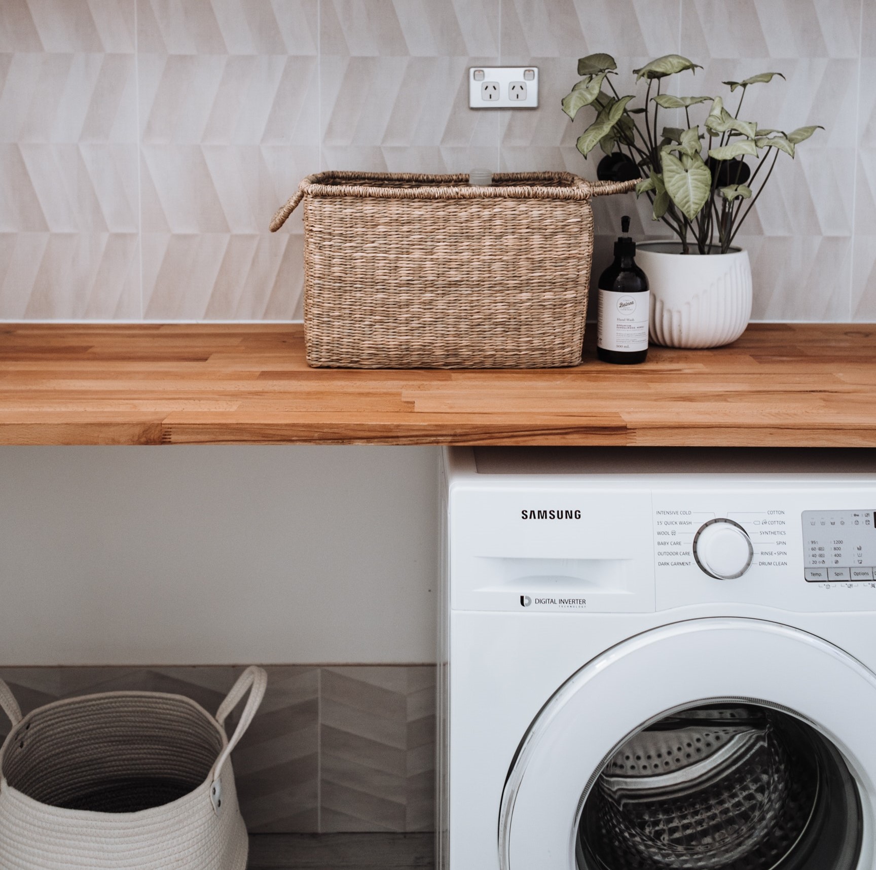 Если планировка дома позволяет вам обустроить стиральную машину на кухне, следует обратить внимание на встроенные машинки. В таких моделях предусмотрено пространство для плинтуса и петли для крышки.