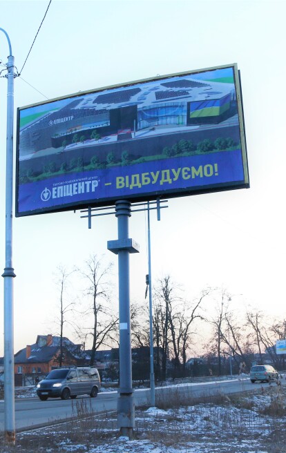 В «Эпицентре» решили презентовать проект 24 февраля, чтобы показать украинцам, что, несмотря на войну, компания не планирует останавливать развитие и готова вкладывать значительные инвестиции в восстановление экономики. Биллборд с проектом нового «Эпицентра» появился в Буче на месте уничтоженного торгового центра.