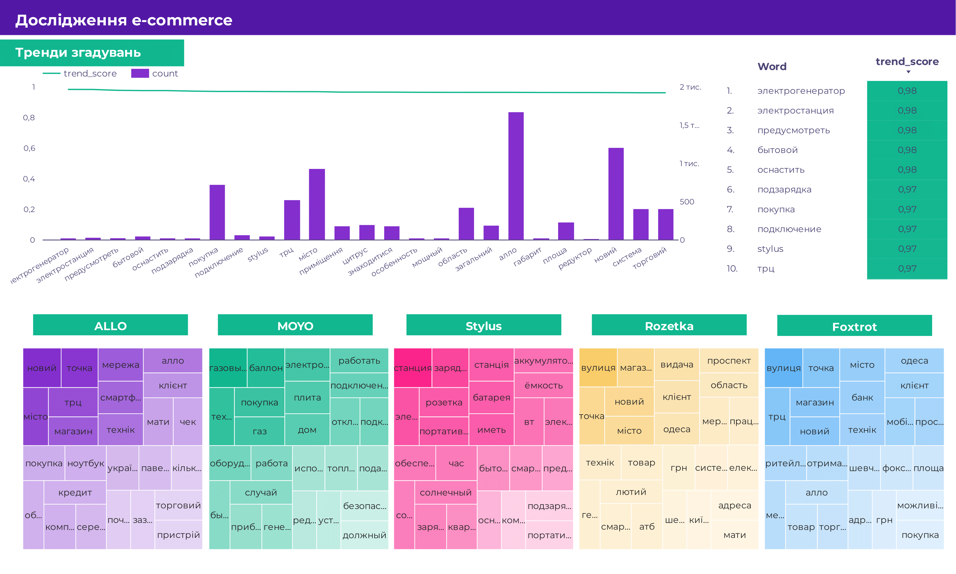 Также видим, что информационный поток и тренды задавали пять магазинов: ALLO, MOYO, Stylus, Rozetka и Foxtrot.