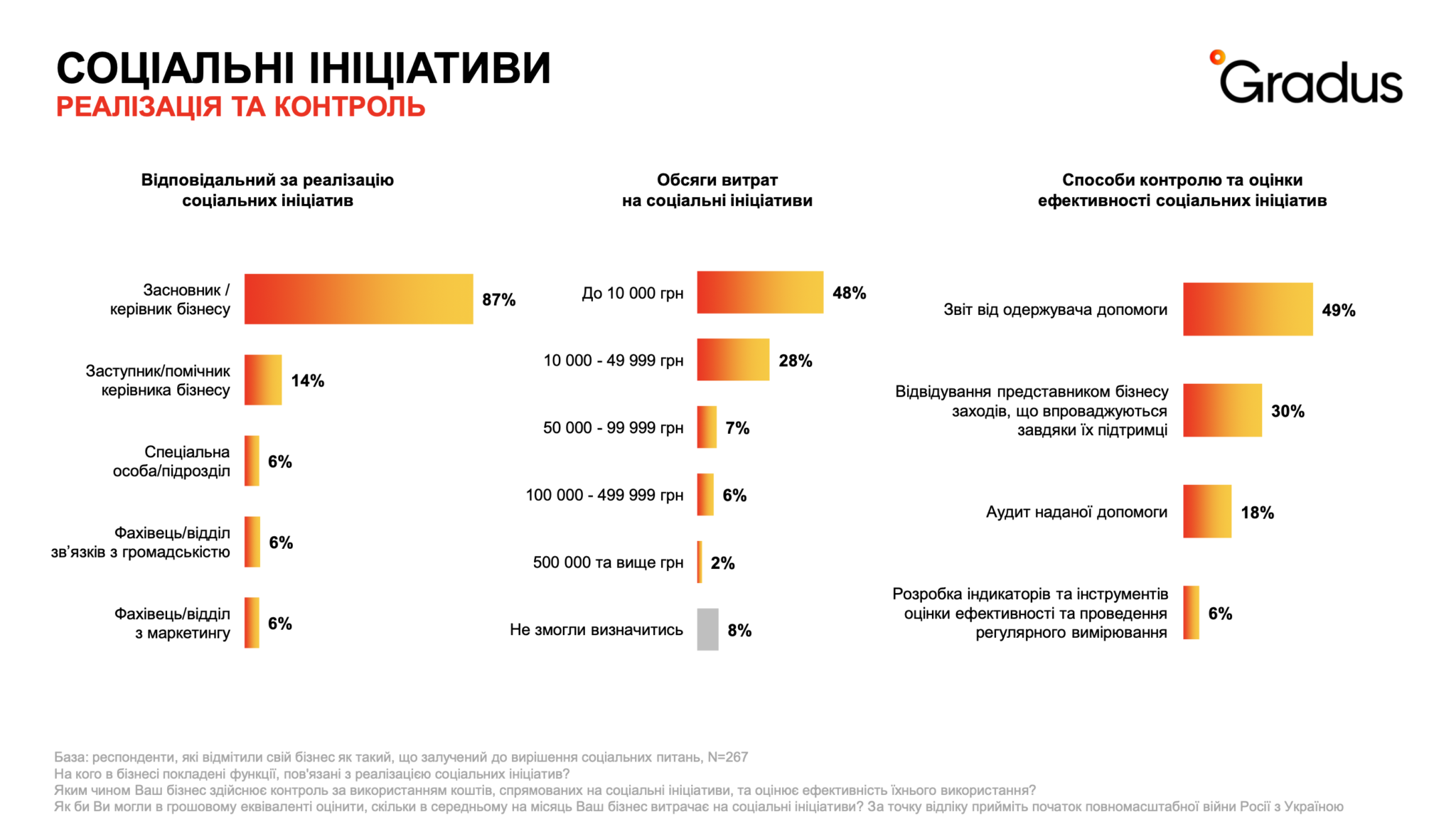 Исследовательская компания Gradus Research совместно с общественной организацией Impact Force провели опрос малого, среднего и крупного бизнеса, чтобы узнать, берут ли на себя компании миссию помогать в решении неотложных социальных вопросов, какие социальные инициативы поддерживают и сколько денег на это тратят.