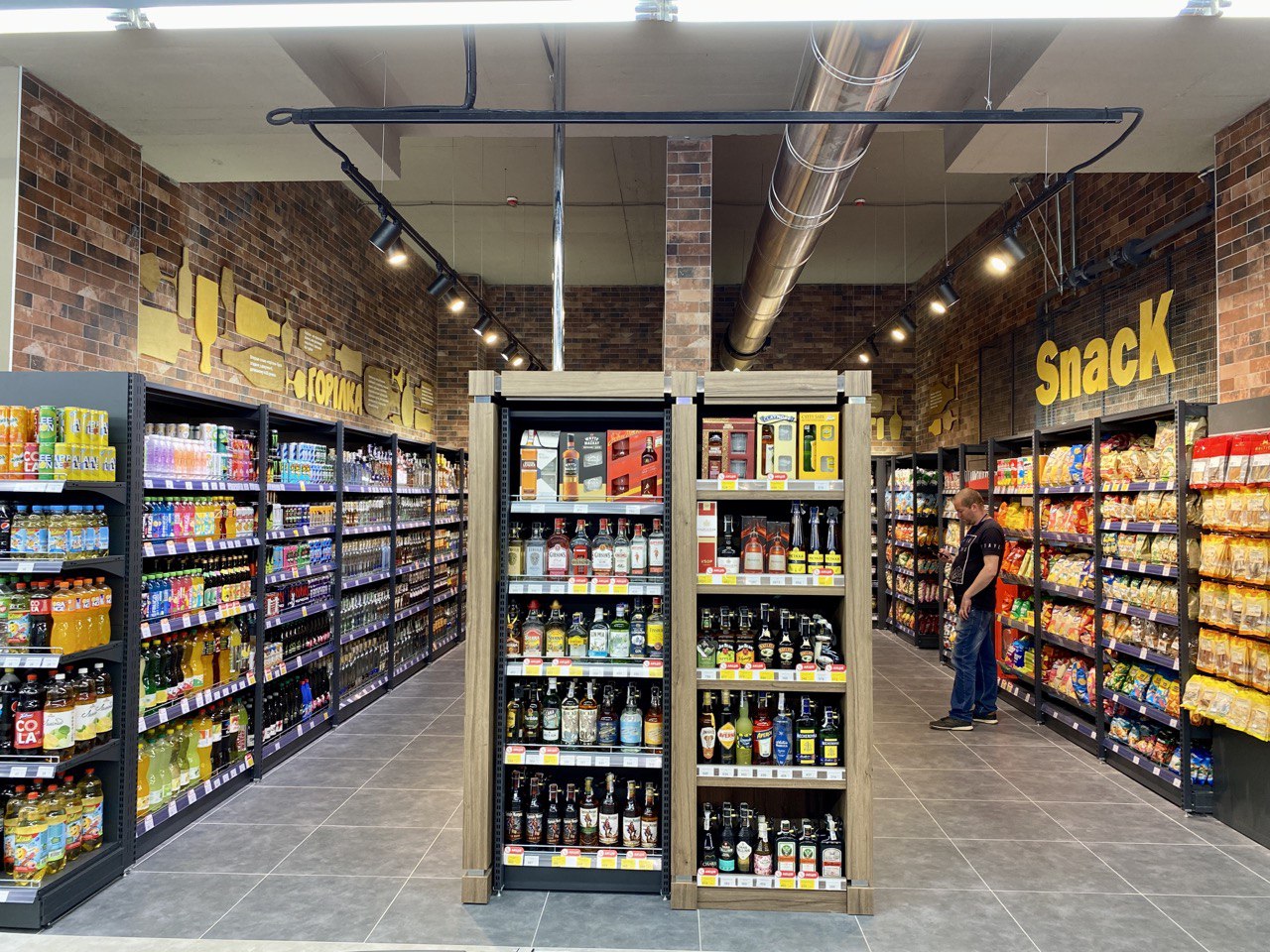 Особое внимание уделили созданию удобных торговых зон, чтобы путешествие покупателя по магазину было максимально приятным и эффективным, а также интерьерному оформлению магазина. Нестандартные решения в отделе алкоголя и снеков. Декор в виде напоминающих бутылки фигур сопровождается интересными фактами о продуктах. Большие фасадные окна и современные витрины делают магазин удобным и приятным для покупок.