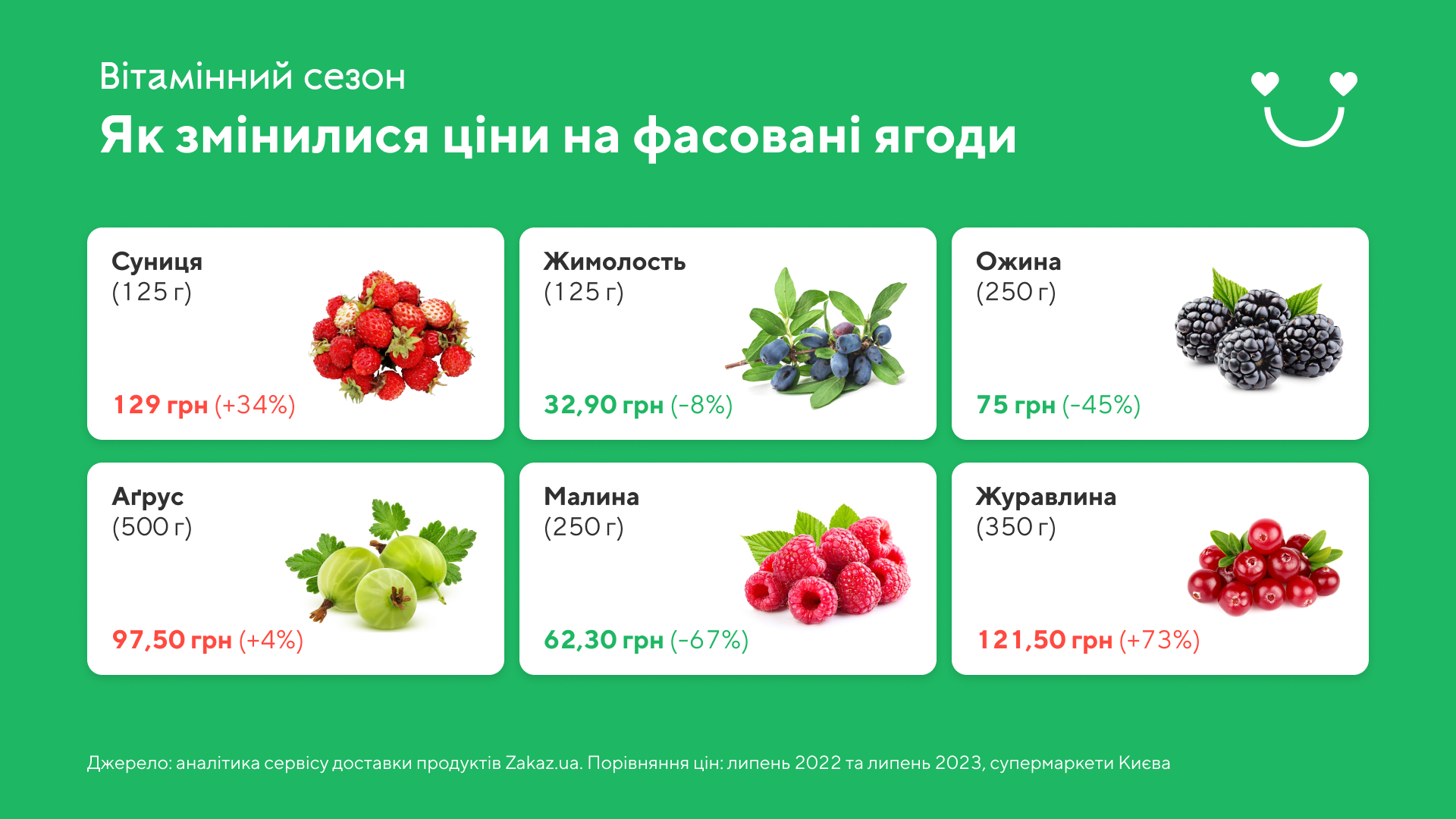 Как за год изменились цены на ягоды: инфографика Zakaz.ua