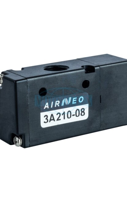 - 3/2 — пневмораспределители с тремя рабочими портами: питание, потребление, выхлоп. Один порт подключается к источнику воздуха, другой — к исполнительному устройству (например, цилиндру), третий — к другому устройству или атмосфере. Их применение необходимо для управления движением и курсом воздуха в одном исполнительном устройстве.