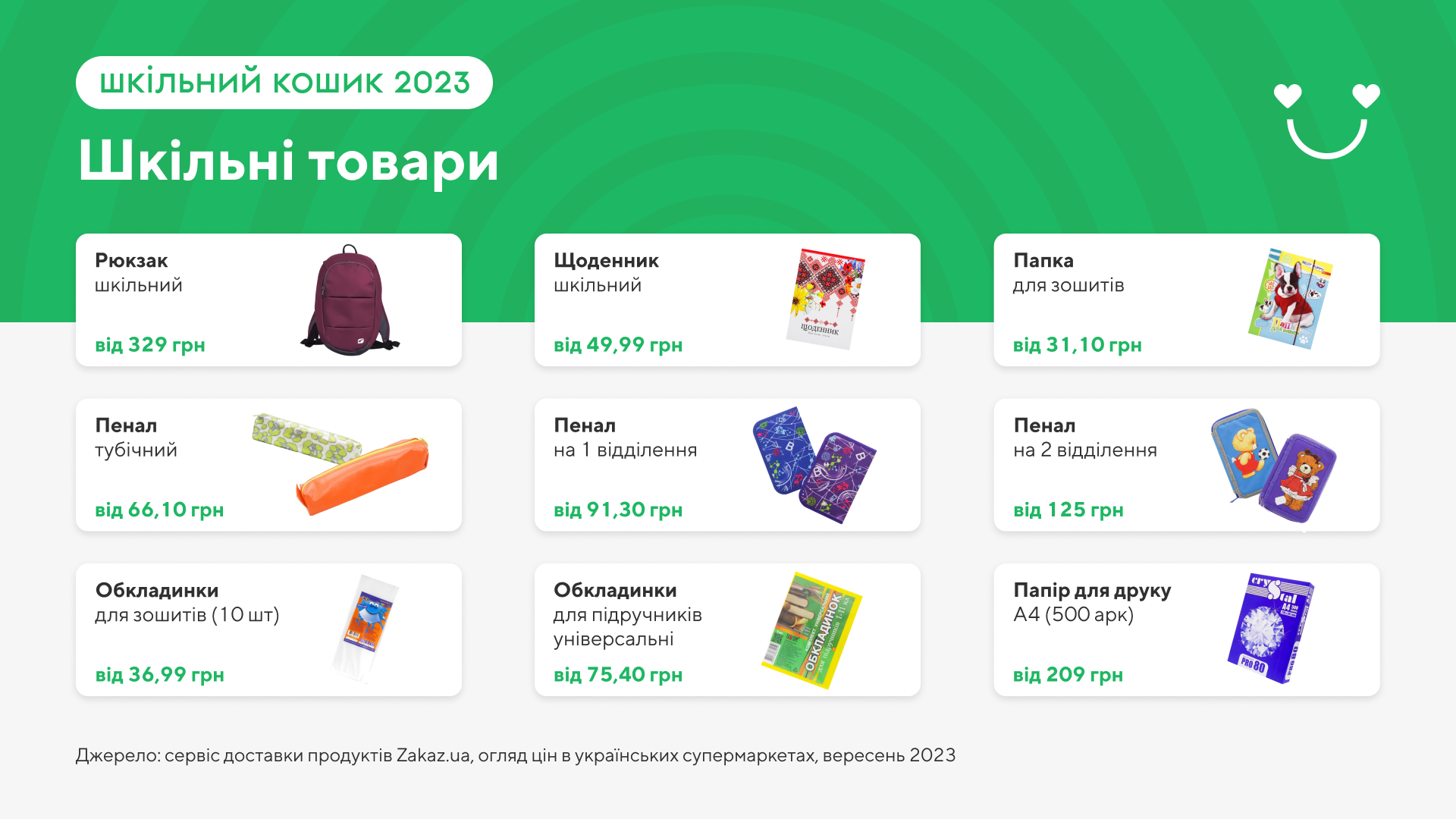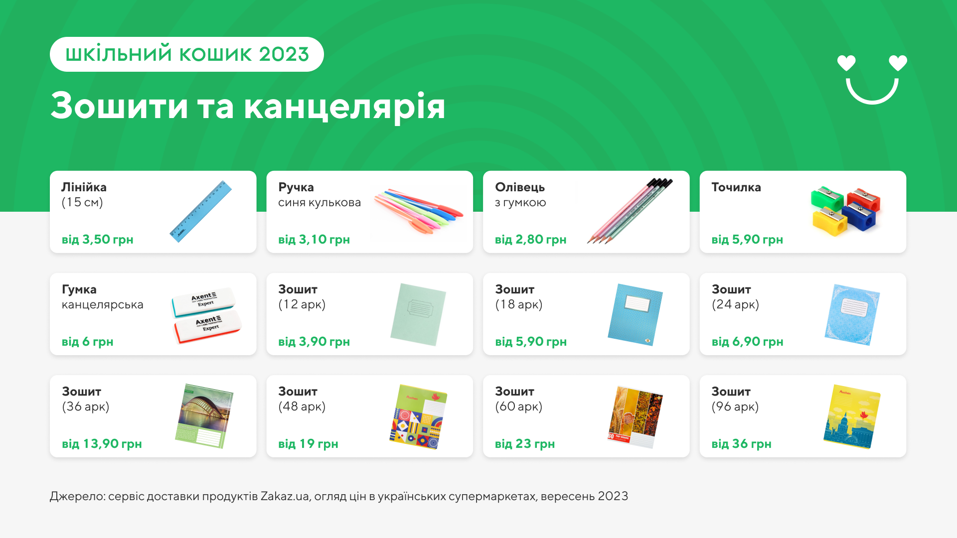 Инфографика Zakaz.ua: цены на канцелярию и школьные принадлежности в супермаркетах в 2023 году
