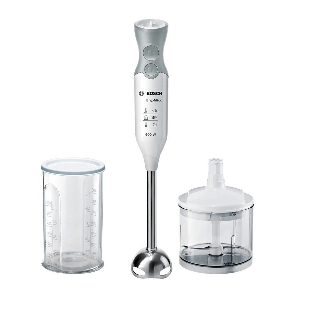 Стоит отметить, что комплектация погружного блендера может быть различной и зависит она от стоимости прибора, а также от производителя. Некоторые модели оснащаются не только ногой, но и специальным венчиком для взбивания крема, также в комплекте может находиться чаша, ее объем может варьироваться в пределах 0,3-0,7 л. В таких чашах также есть небольшой нож для измельчения.