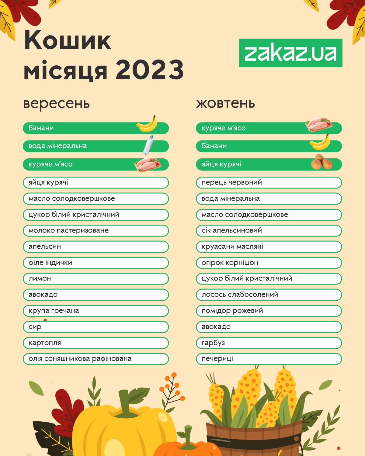 Специалисты Всеукраинского сервиса доставки продуктов Zakaz.ua подвели итоги онлайн-продаж за сентябрь и октябрь 2023 года и подготовили интересную аналитику ТОП продуктов, которые пользуются популярностью осенью в заказах покупателей.