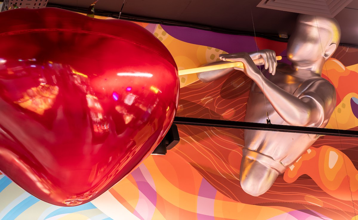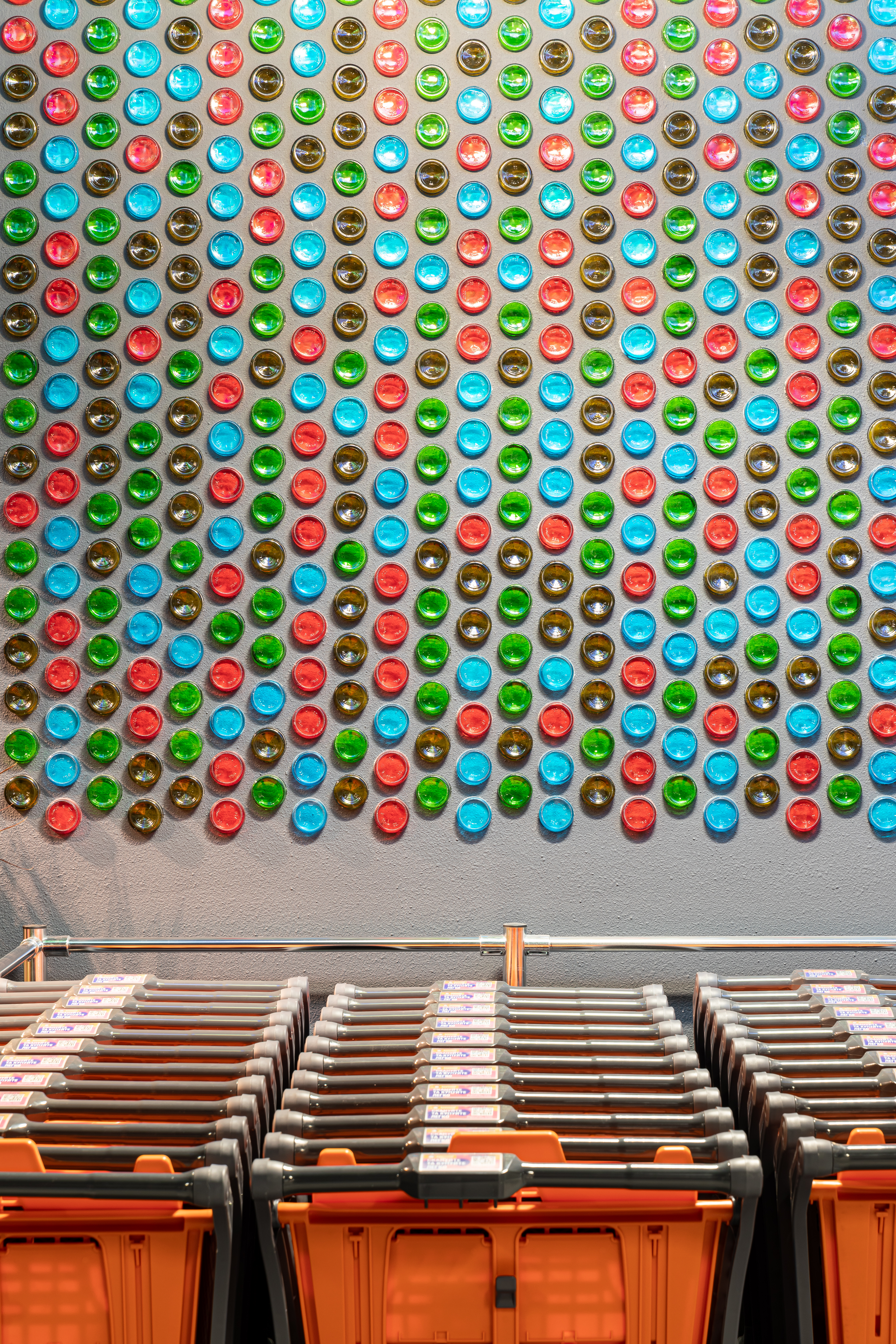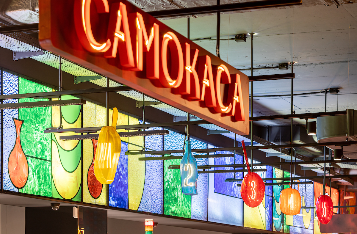 Супермаркет «Сільпо» стал центром искусства стеклодувов с игрой цветов и света. Знакомство начинается с игривых блесков света в витраже на входе.