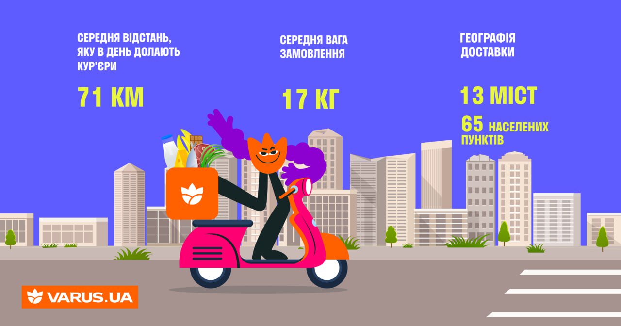 В самом большом интернет-заказе с VARUS.UA сборщик насчитал 158 позиций, а самый тяжелый заказ весил 100 кг. Отметим, что средний вес заказа, который доставляют курьеры — 17 кг, а расстояние, которое в день преодолевают курьеры — 71 км. Рекордсменом по количеству чеков за день стал человек, совершивший покупки 38 раз в сутки. Самым длинным чеком года стал насчитавший 162 позиции.