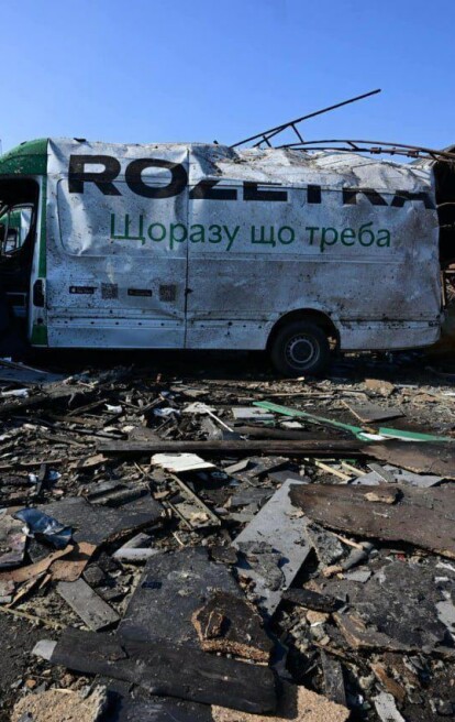 В результате ракетного удара врага по Киеву пострадал склад маркетплейса Rozetka, транспорт компании и товары.