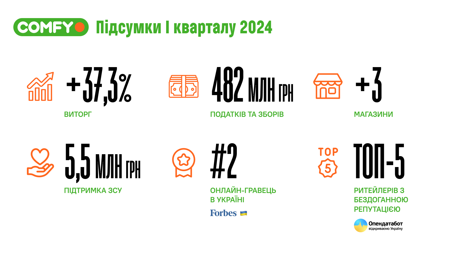 Итоги работы COMFY в I квартале 2024: уплачено 482 млн грн налогов и сборов