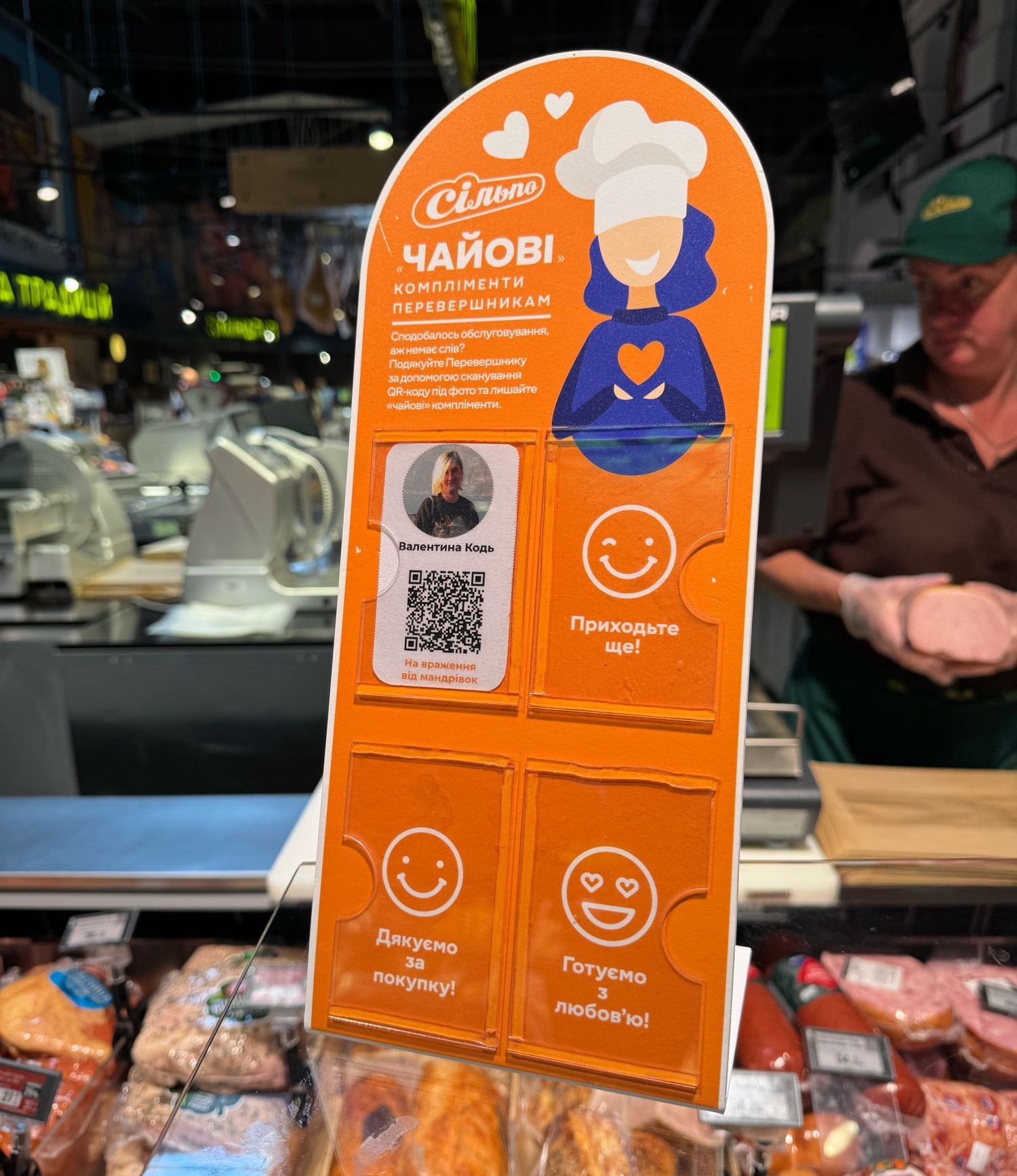 Поблагодарить работников «Сільпо» можно с помощью QR-кода под фото сотрудника конкретного отдела, а также оставить «чаевые» комплименты по своему усмотрению.