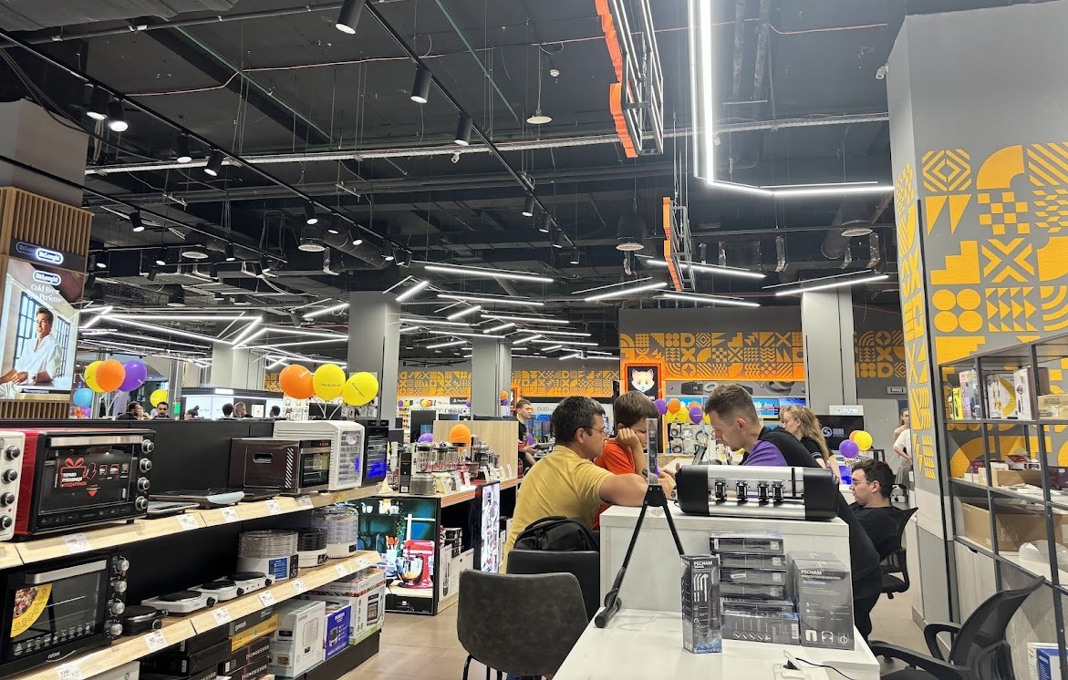 Среди других новинок — обновили зону хаба, где сконцентрированы сервисы оплаты, настройки, а также зона выдачи онлайн-заказов. Обустроили бренд-зону кухонной техники от ТМ KitchenAid. Также в магазине представлено более 40 брендов мировых брендов со сверхсовременными и инновационными товарами. Здесь продавцы-консультанты и представители брендов предоставят максимальную консультацию по товару. Для безбарьерной коммуникации с покупателями с нарушением слуха в магазине подключен сервис по обслуживанию жестового языка.