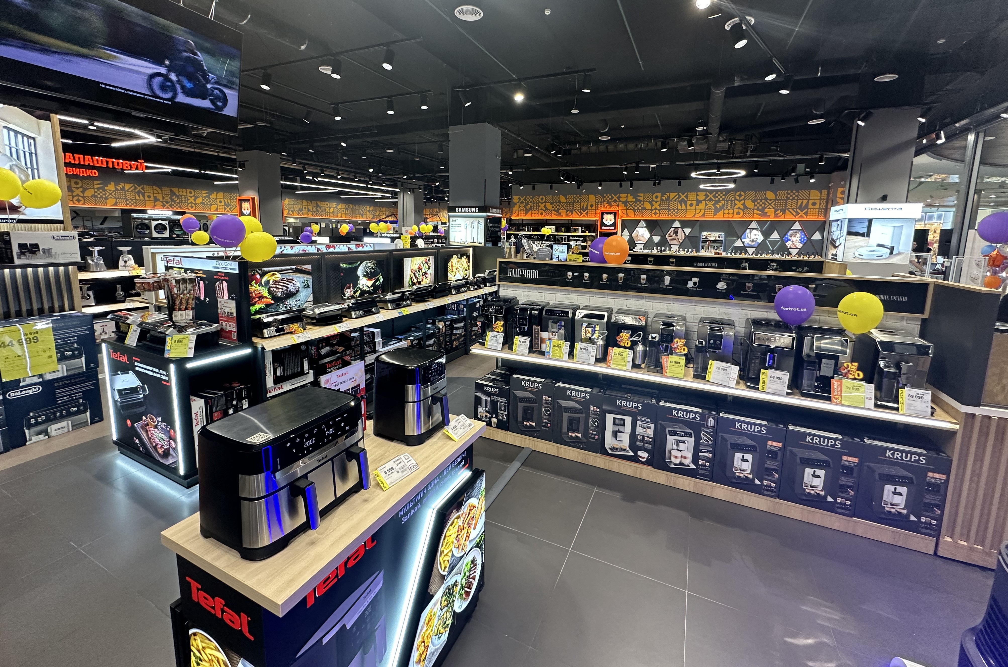 В пределах сохранившейся площади (общая 1462 кв. м, торговая — 1295 кв. м) в магазине провели перепланировку, что позволило улучшить представленность максимального ассортимента техники.