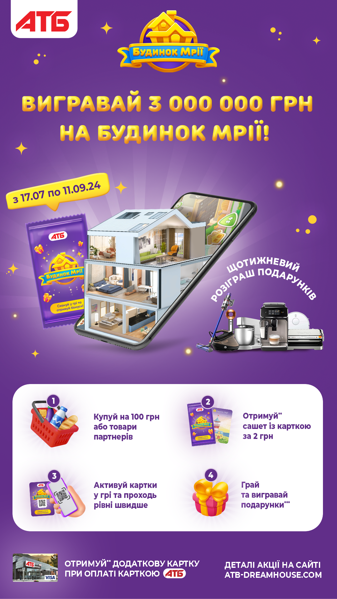 Объединив усилия, сеть АТБ и Art Nation Loyalty представляют новую программу лояльности «Дом мечты», в финале которой будет разыграно 3 миллиона гривен на покупку дома.