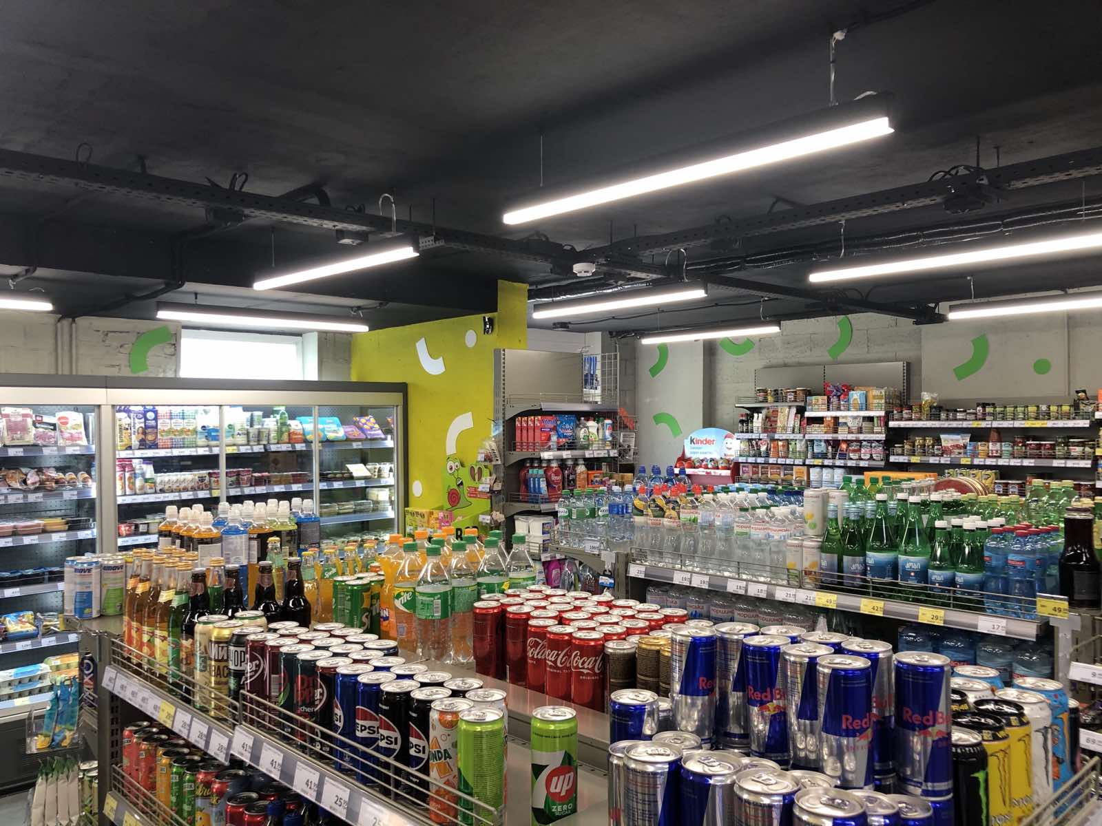 Магазин имеет общую площадь 98,1 кв.м., из которых 90,1 кв.м выделено под торговую площадь. Это позволяет эффективно разместить широкий ассортимент всех групп товаров для повседневного потребления. В магазине представлено 3000 наименований товаров, среди которых: продукты питания, бытовая химия, товары для дома, а также свежевыпеченные хлебобулочные изделия и хот-доги, которые готовятся непосредственно в магазине.