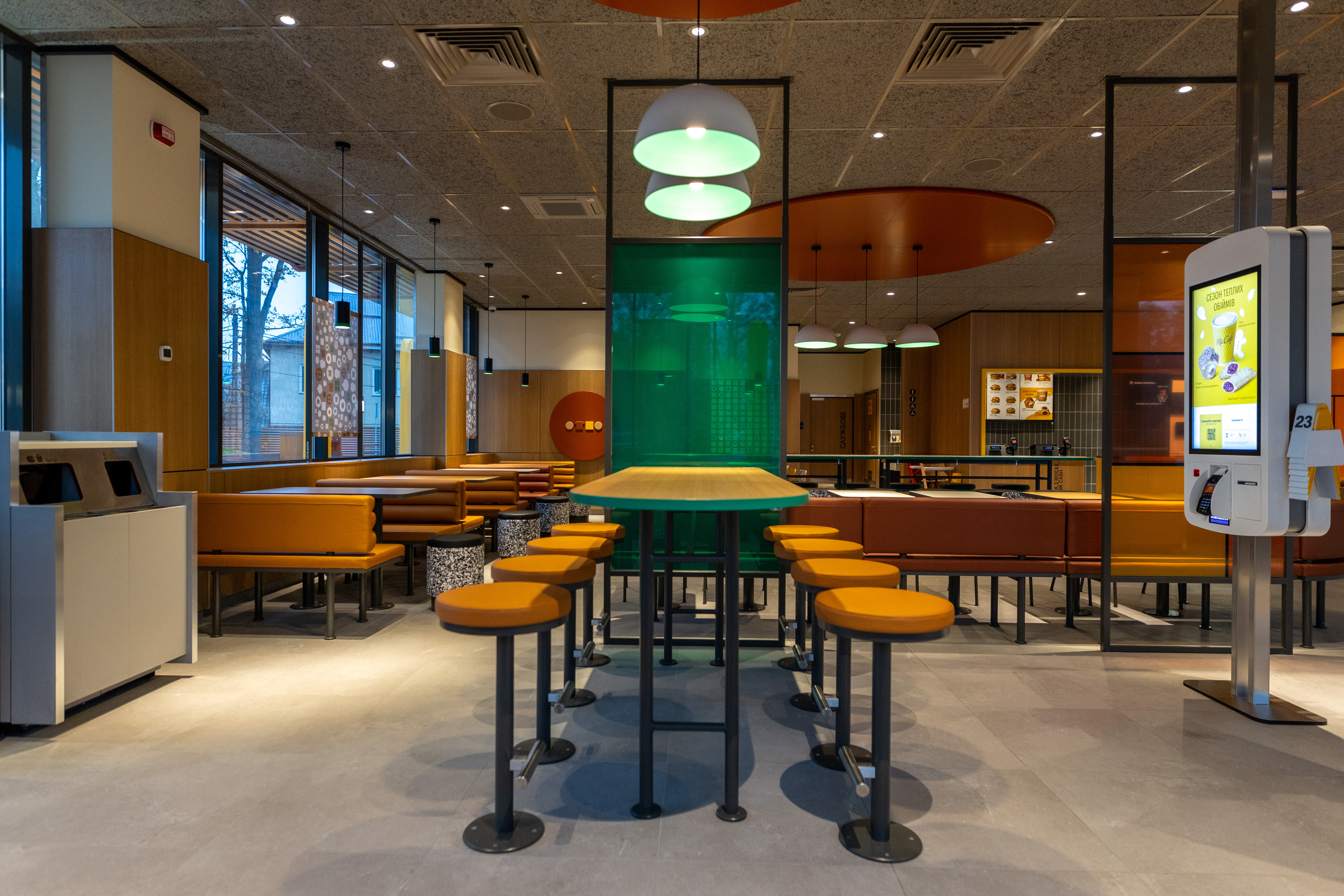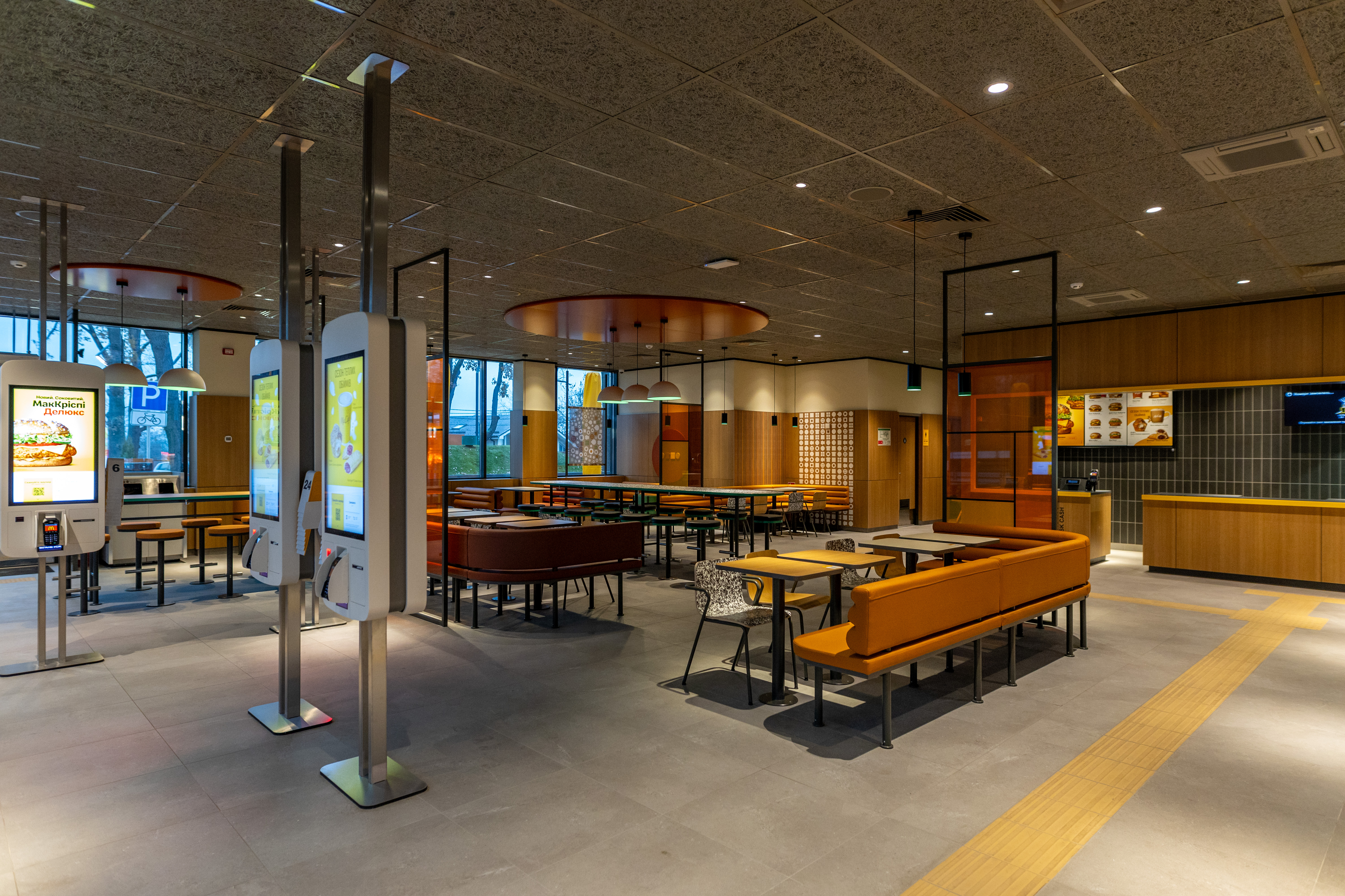 В просторном заведении площадью 471 м² гости могут разместиться в зале на 123 мест или на террасе на 126 мест. С первого дня работы ресторан будет работать с 7:00 до 22:00. Для быстрого и бесконтактного заказа посетители могут использовать терминалы самообслуживания или заказать любимые блюда на кассе.