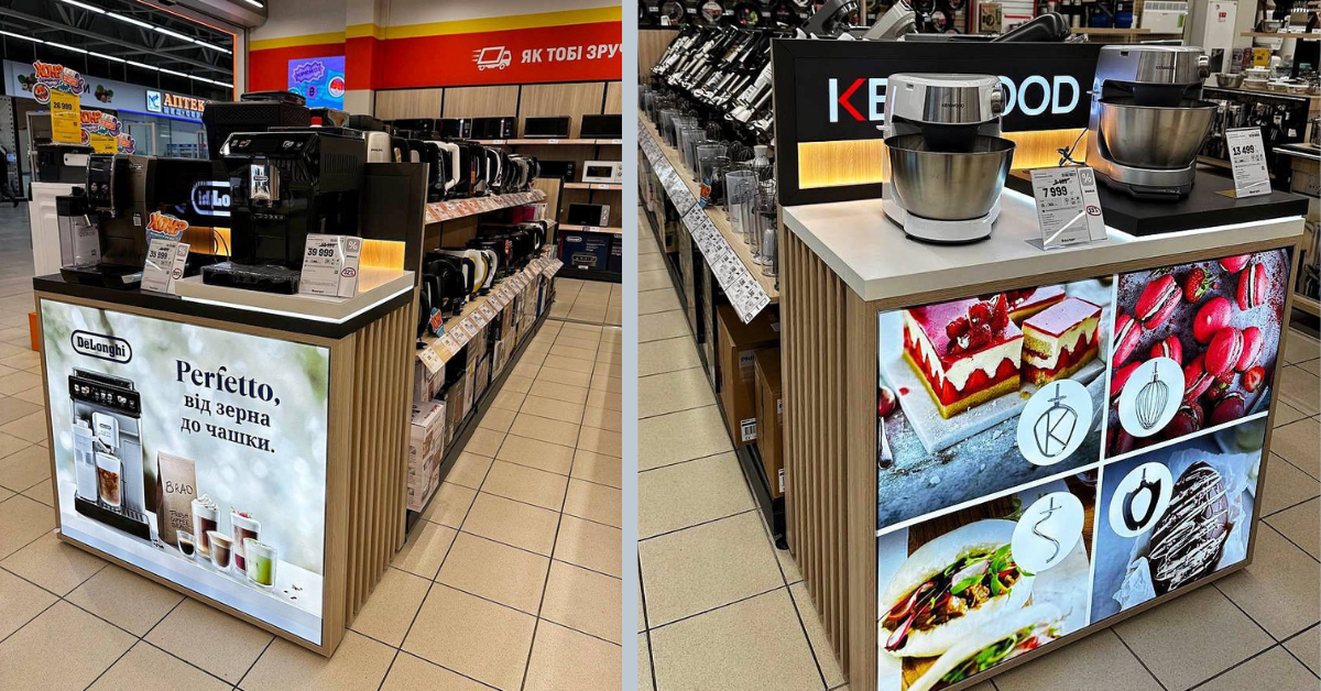 Согласно новой концепции оформления, магазин «одели» в фирменный стиль «вышиванки». Национальные мотивы, органически интегрированные в современный дизайн, создают атмосферу уюта.