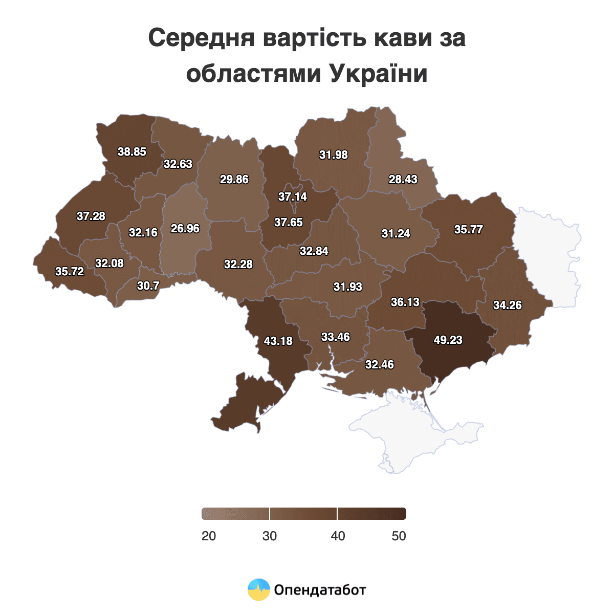 Самый дешевый кофе второй год подряд фиксируется в Хмельницкой и Сумской областях — 28 грн за чашку.