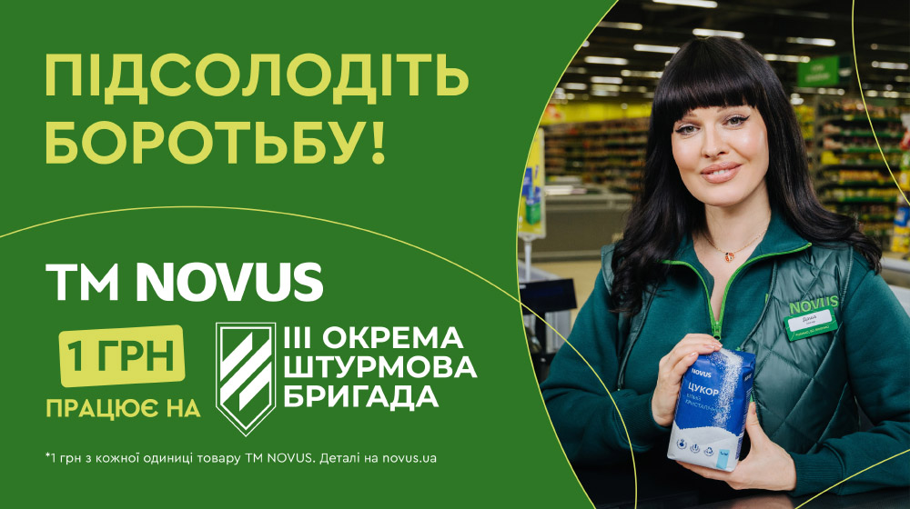 В продолжении рекламной кампании в 2025 году акцент сделан уже на сахаре ТМ NOVUS. Как и в первой части — с благотворительной целью. Ведь с каждого проданного товара собственной марки 1 гривна направляется на поддержку украинских военных — 3 ОШБР. Благодаря инициативе с собственной маркой уже передано 21 млн грн, которые пошли на закупку автомобилей, антидроновых ружей и приборов ночного видения.
