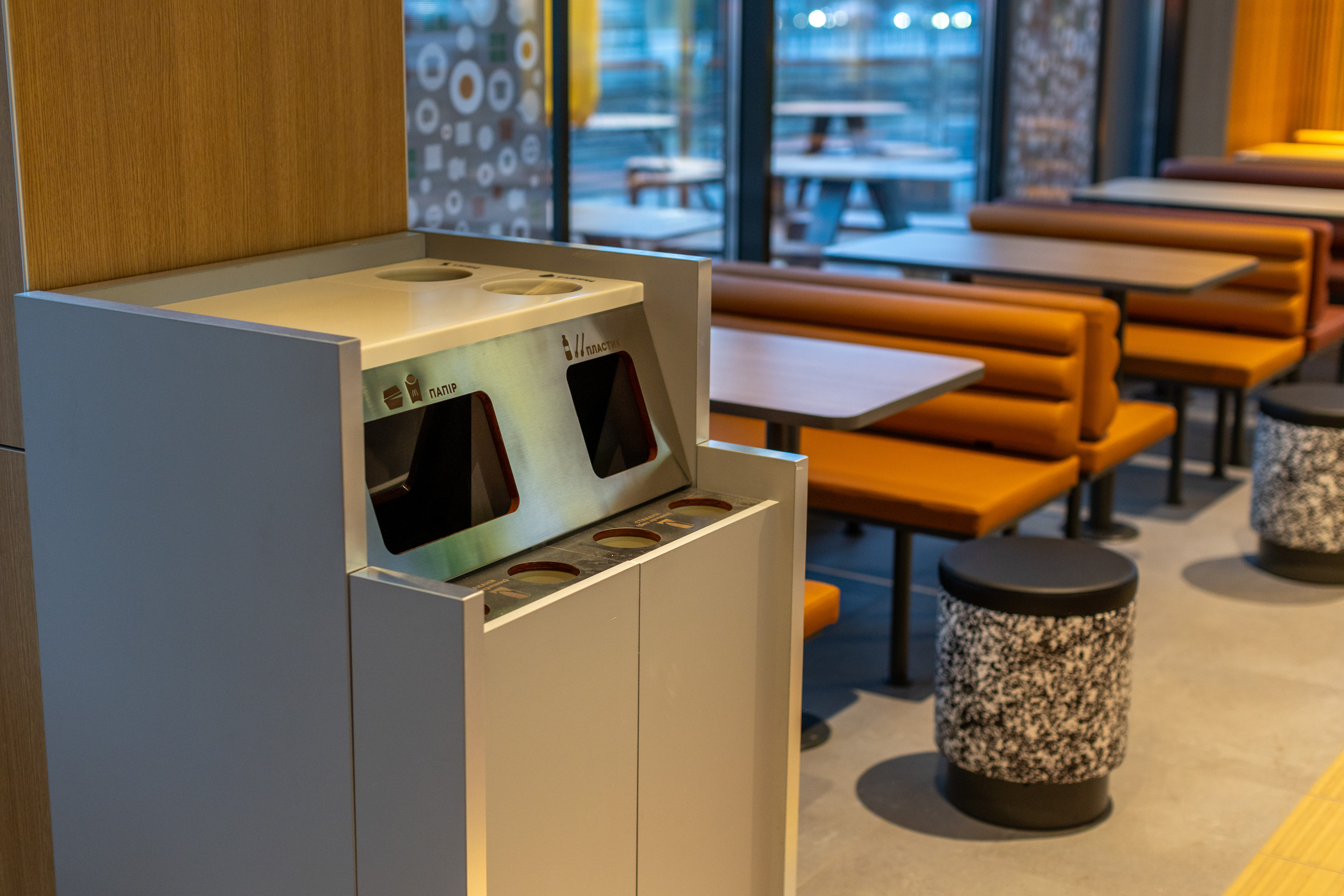 Еще с 2019 года компания внедряет в Украине комплексную систему сортировки и переработки отходов, реализуя принципы циркулярной экономики. В 2024 году МакДональдз ежемесячно сортировал и отдавал на переработку более 200 тонн отходов из залов и кухонь ресторанов. Среди них бумага, пластик, тетрапак, органические отходы, отработанное масло и даже кофейная макуха и жир, выделяемый при приготовлении блюд из мяса.