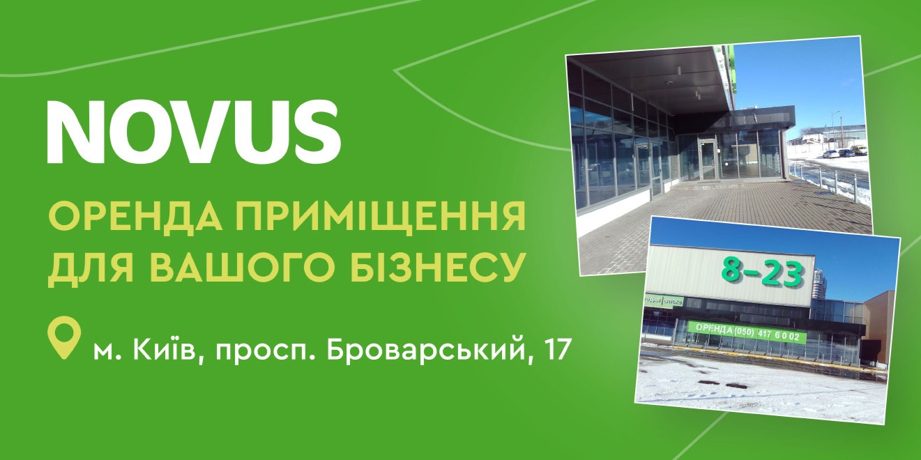 Сеть супермаркетов NOVUS открывает возможность аренды просторного двухуровневого помещения в торговом центре по адресу: Киев, просп. Броварский, 17.