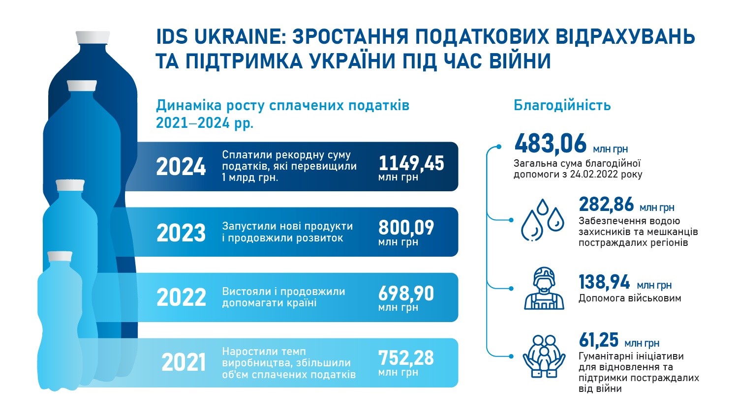Компания IDS Ukraine, ведущий украинский производитель бутилированной воды ТМ «Моршинская», «Миргородская» и других брендов напитков, подвела итоги 2024 года, установив новый исторический рекорд по уплате налогов.