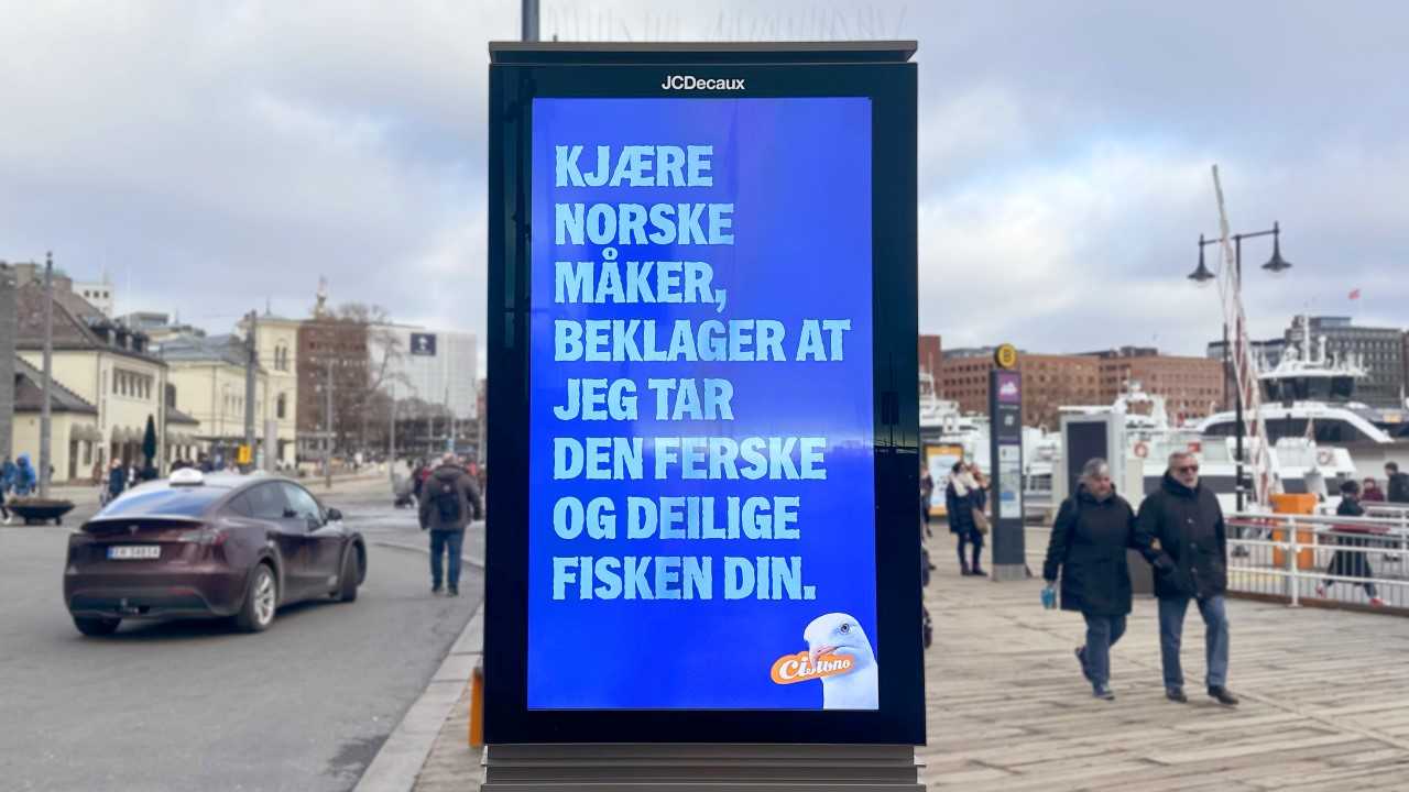 Чтобы птицы точно увидели послание, борды установили в их любимом районе — на набережной Aker Brygge, где Осло-фьорд соединяется с открытым морем.