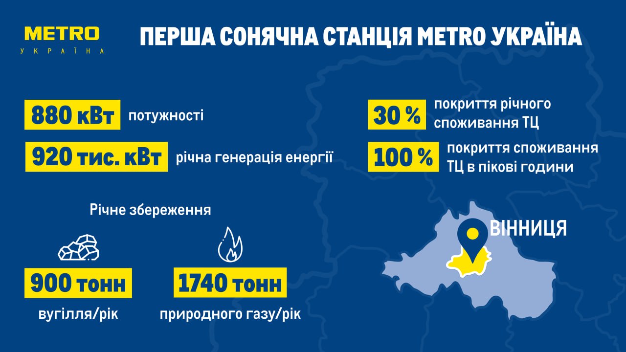 «Строительство собственной солнечной станции — это не просто экономически выгодное решение, но и стратегический шаг к энергетической устойчивости и ответственному отношению к окружающей среде. Мы инвестируем в будущее, внедряя энергоэффективные технологии, уменьшающие углеродный след. Уже в этом году мы установим солнечные станции общей мощностью не менее 3 МВт в Ивано-Франковске и Львове, а в перспективе пяти лет — обеспечить все наши торговые центры собственной солнечной энергией с более чем 15 МВт мощности», — комментирует Александр Сикора, руководитель отдела по техническому обслуживанию и эксплуатации METRO Украина.