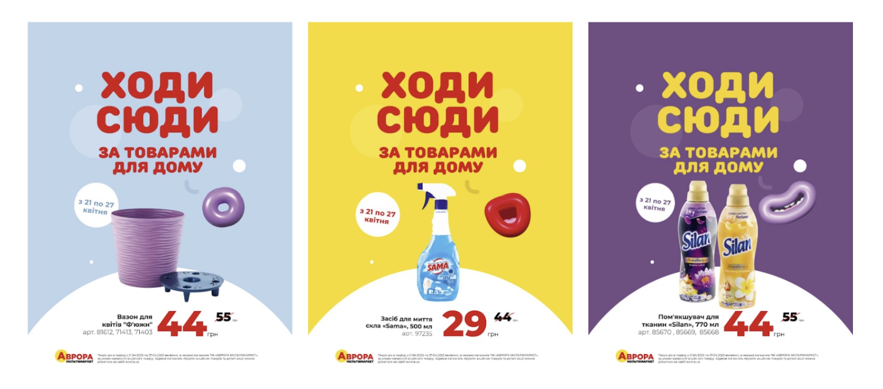 В рамках кампании использован мультиканальный подход. В магазинах сети «Аврора» размещены креативные POS-материалы, выделяющие акционные товары на полках. Параллельно коммуникация ведется в digital-платформах и соцсетях: YouTube, TikTok, X и Threads. Для усиления кампании также присоединились инфлюэнсеры. Поскольку кампания «Ходи сюди» направлена на новую аудиторию, были привлечены и новые каналы коммуникации, такие как Programmatic и наружная реклама.