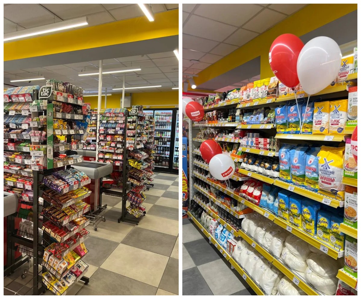 Формат нового магазина соответствует классической концепции сети: супермаркет с фокусом на продуктовом ассортименте и гибкой ценовой политике. Просторный торговый зал включает отделы молочной продукции, кулинарии, гастрономии, мяса, овощей и фруктов, сладостей и напитков.