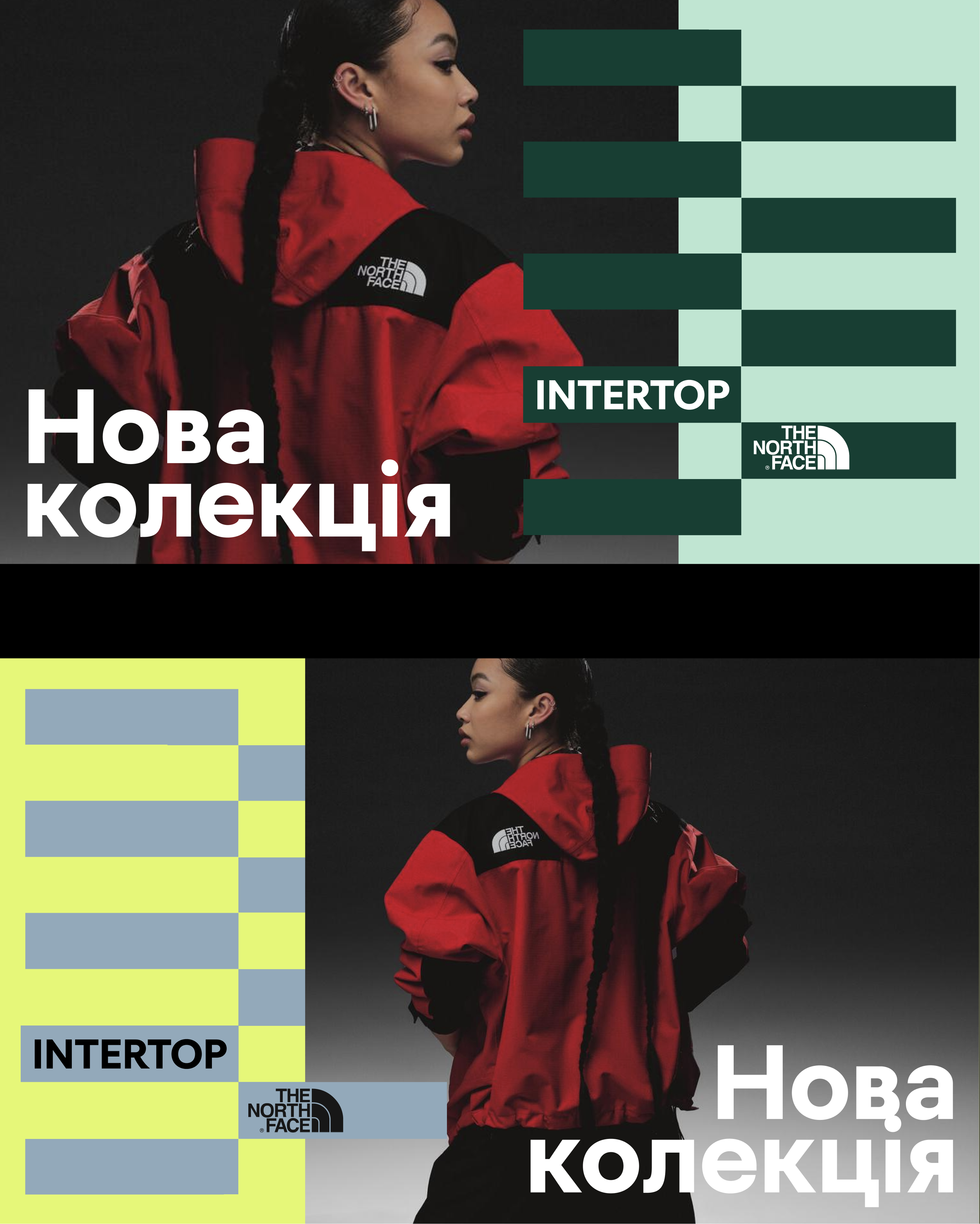 Все коммуникации INTERTOP стали более теплыми, честными и более человечными. В айдентике также внедрили шаблон маркировки Battenberg marking, впервые разработанный британцами. Такой прием использует чередование контрастных светлых и темных цветов, чтобы увеличить видимость для глаз и сфокусировать внимание клиентов на акцентных вещах в рекламных кампаниях. Цветовая палитра корпоративных цветов расширилась: всеми узнаваемый зеленый трансформировался, добавились еще желтый, розовый, бордовый, голубой, отражающие настроение коммуникаций или тональность рекламных кампаний.
