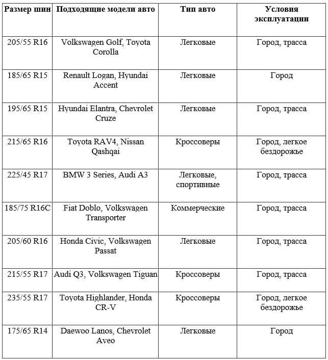 На основе данных интернет-магазинов и отзывов украинских водителей мы составили список самых востребованных типоразмеров шин. Эти размеры подходят для популярных моделей авто, таких как Volkswagen, Toyota, Hyundai, Skoda и других, которые часто встречаются на дорогах Киева, Львова и других городов.