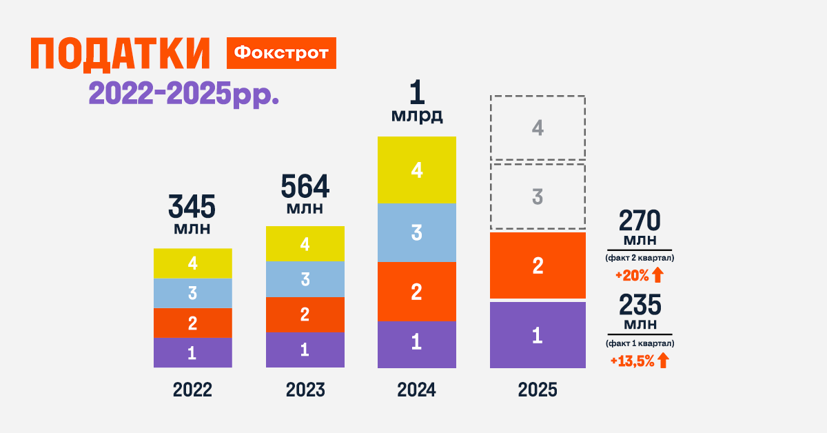 «Итоги первого полугодия 2025 года свидетельствуют о том, что системная стратегия дает стабильный результат — даже в условиях вызовов военного времени. Мы уверенно развиваемся в коммуникальной среде, развиваем команду, поддерживаем государство, усиливаем связь с клиентами и держим социальный фронт. И не останавливаемся, потому что имеем вектор дальнейшего развития и веру в Украину», — отметил Алексей Зозуля, СЕО Фокстрот.