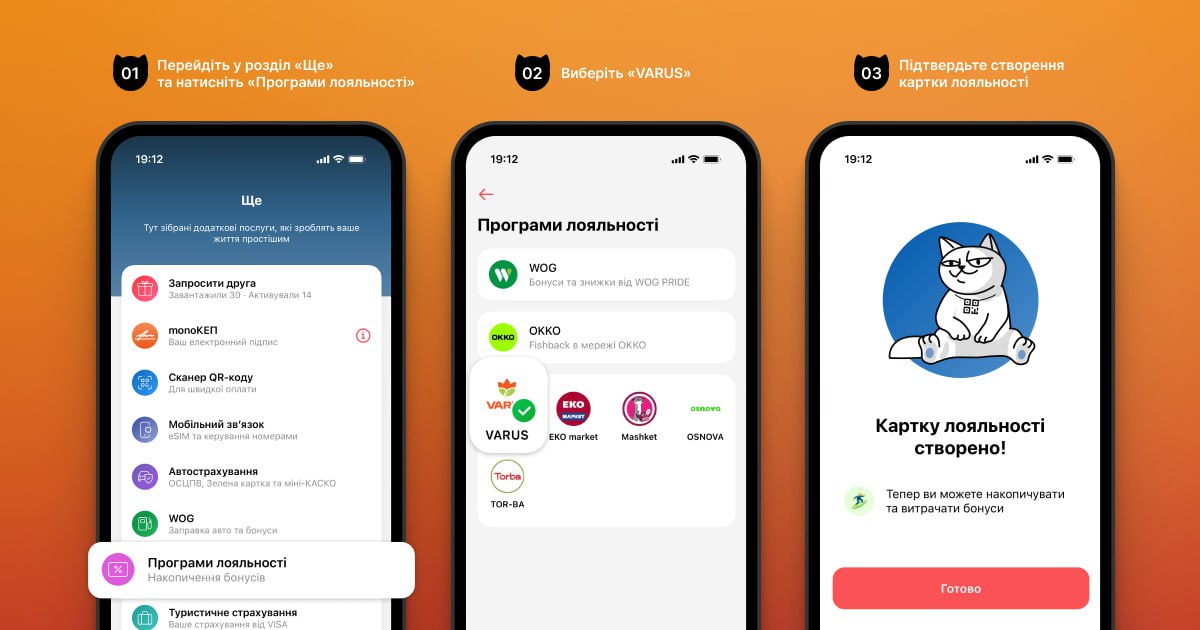 Система работает просто: покупатель рассчитывается картой monobank в VARUS, а технология LoyaltyAI автоматически распознает клиента и начисляет бонусы. После первой покупки клиент получает уведомление в приложении monobank с предложением подключить программу лояльности в один клик.
