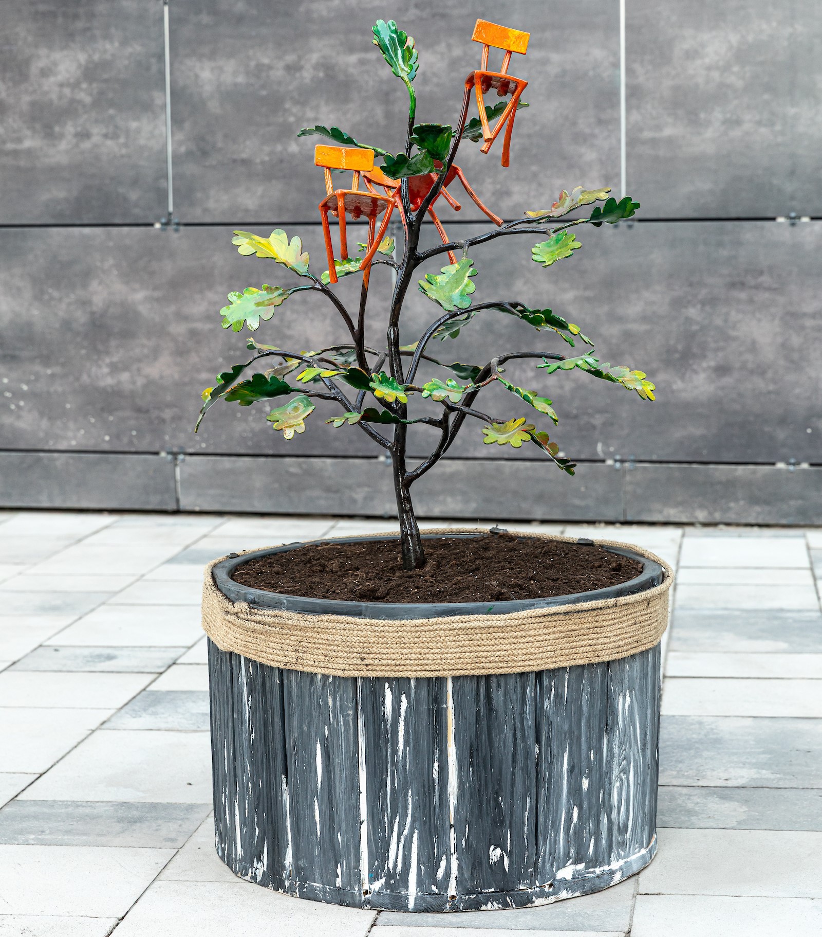 У входа в «Сільпо» стоит дуб от Владимира Белоконя, на котором вместо желудей растут стульчики. Кстати, гости смогут увидеть, как это дерево постепенно растет, хоть и изготовлено из металла.