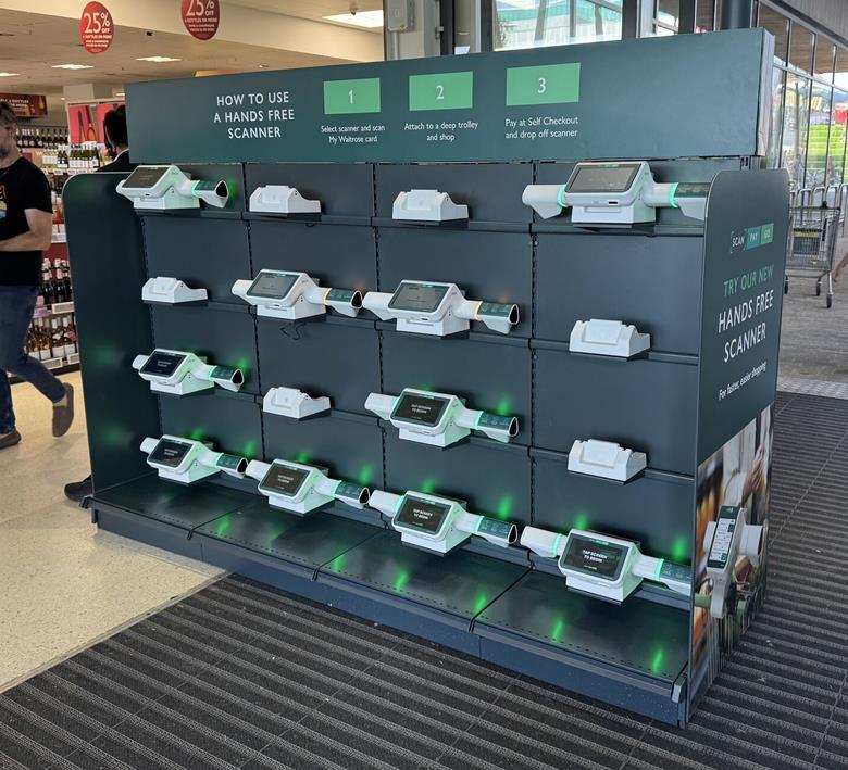 Технология состоит из устройства, похожего на руль, который крепится к обычной тележке Waitrose.
