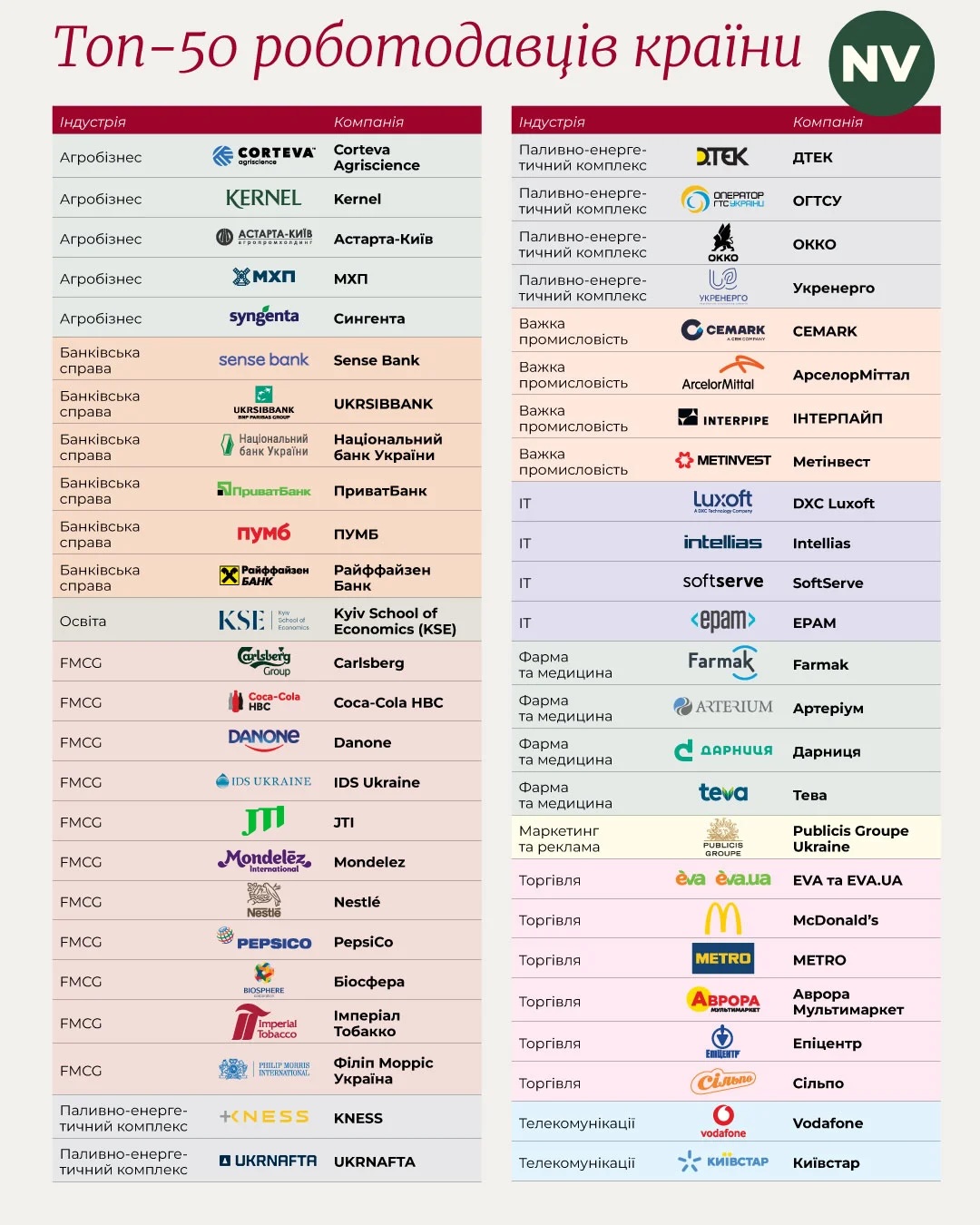 Рейтинг лучших работодателей — совместный проект NV и Odgers Ukraine, международной компании по поиску и оценке руководителей высшего уровня. Этот список дает представление потенциальным кандидатам о том, какие компании в Украине прилагают максимальные усилия для поддержки своих сотрудников во время войны.