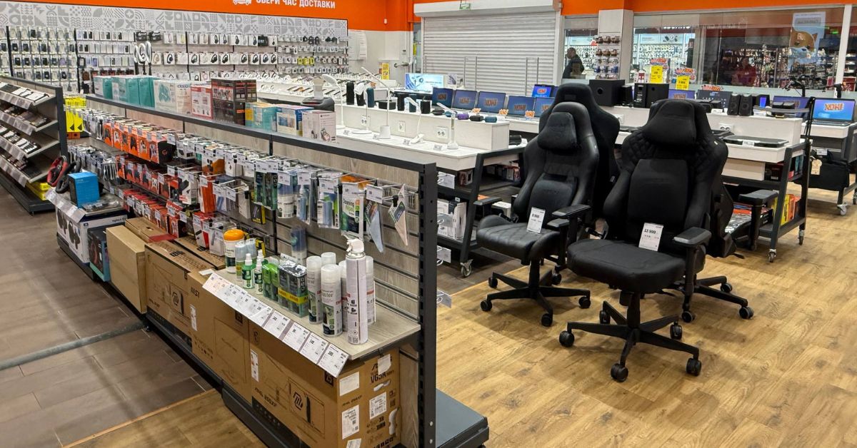 Отдельное внимание уделено бренд-зонам ведущих производителей техники, среди которых: Samsung, Hisense, Tefal, Philips, DeʼLonghi, Krups, Razer и Logitech. В магазинах также представлен фирменный мерч с лисичкой Фокси. Часть средств от его продаж направляется на поддержку детей, пострадавших от войны.