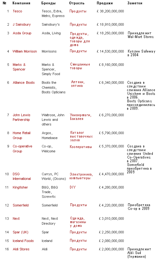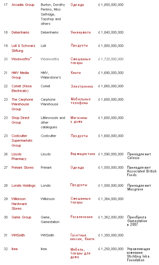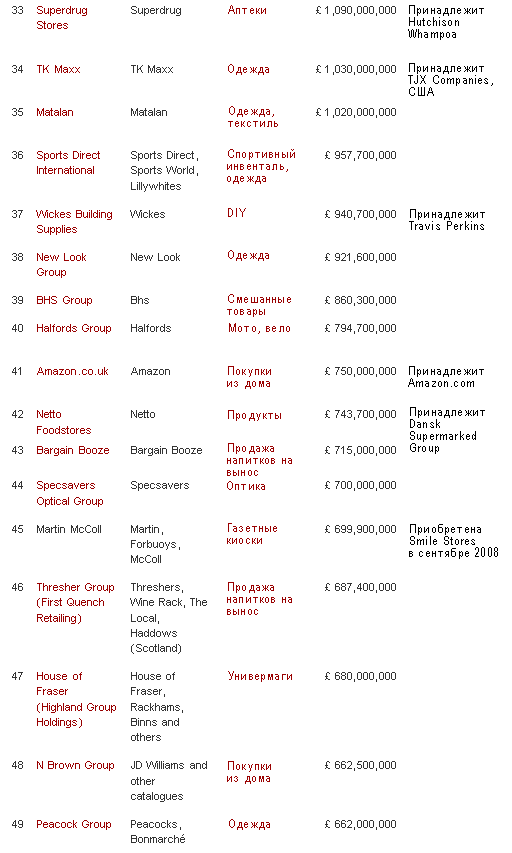 ТОП 50 британских ритейлеров 2008-2009