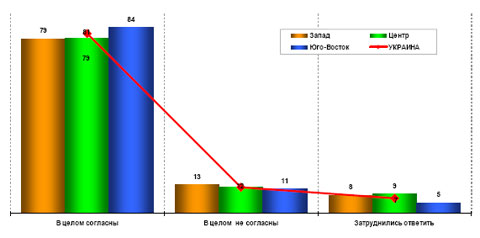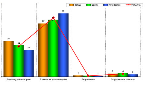 Согласно исследованию, большинство (64%) украинцы в целом не удовлетворены качеством продуктов питания в последнее время (см. Диаграмму 1). В целом качество продуктов удовлетворяет 33% украинцев. Больше всего довольных качеством продуктов - на западе Украины (38% опрошенных этой территориальной группы), а недовольных - на юго-востоке страны (68%).