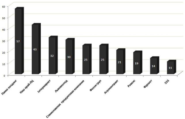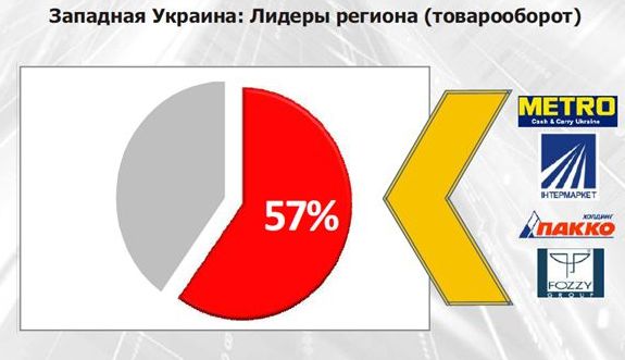 Почти 60% всей организованной торговли продуктами питания Западной Украины обеспечивают 4 компании – METRO, Интермаркет («Барвинок» + «Арсен»), ПАККО («Вопак» и «ПАККО»), а также «Фоззи Груп» («Сильпо, «Фора» и «Фоззи»).