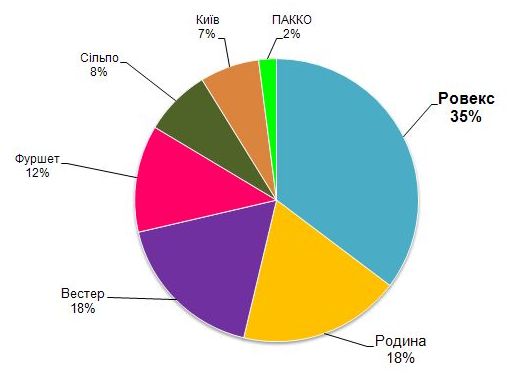 Диагр. 3. Ровно - Распределение по суммарному товарообороту, %