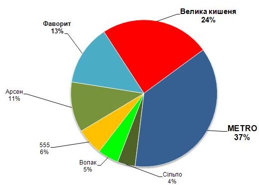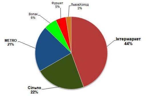 Львов – самый большой западноукраинский город, следовательно имеющий самый емкий рынок здесь. Долгое время монопольное положение в розничном товарообороте города занимали магазины компании «Интермаркет» («Барвинок» и «Арсен»), которые и сейчас еще занимают 44% рынка.