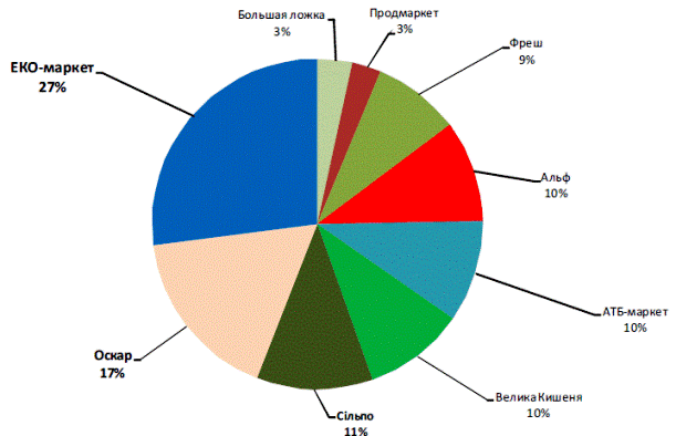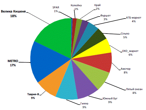 Диагр. 2. «Основные игроки на рынке продовольственного ритейла Южной Украины»